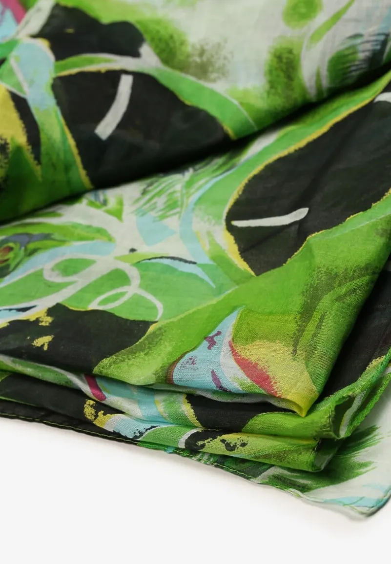 Jasnozielony Bawełniany Klasyczny Szalik Apaszka z Abstrakcyjnym Wzorem Nihilisa