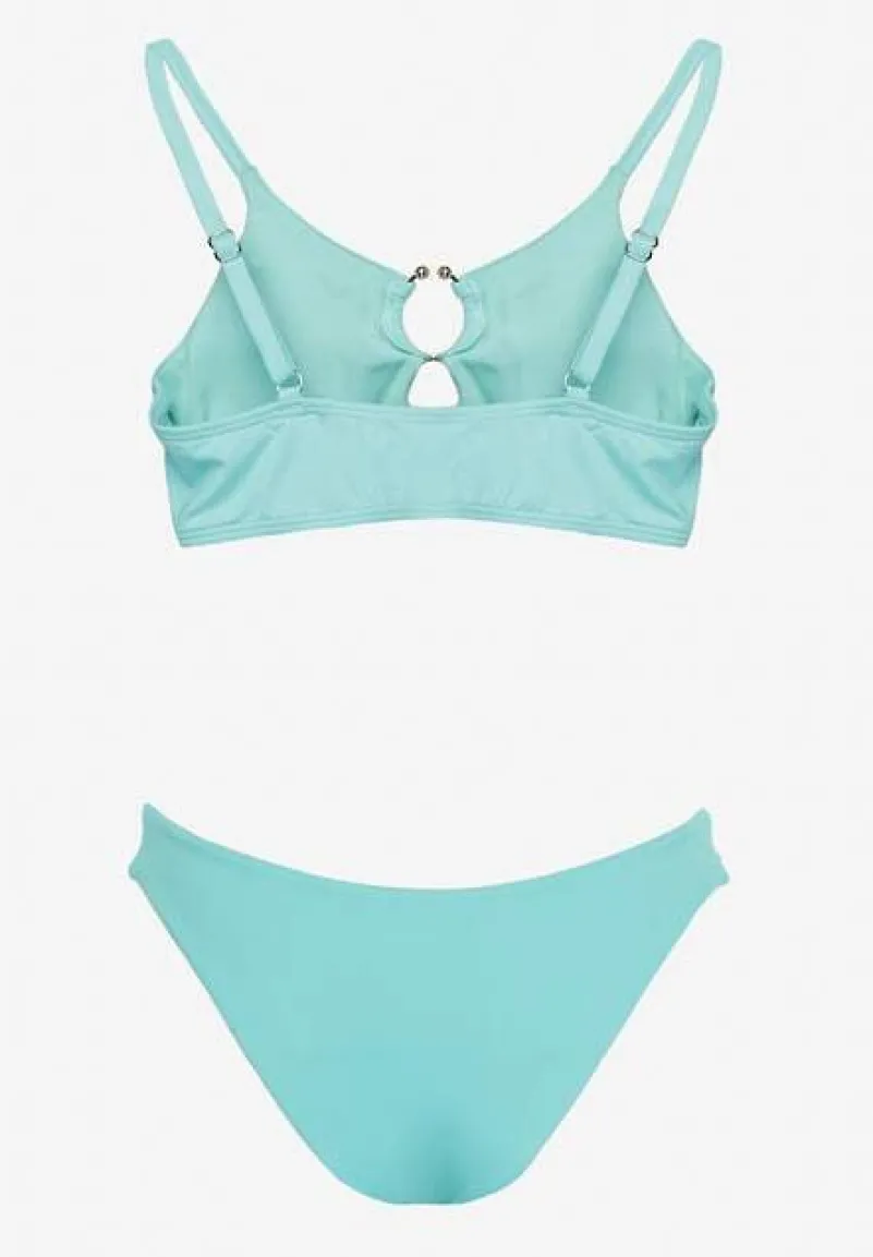 Miętowe Bikini Nieodpinany Biustonosz z Usztywnianymi Miseczkami i Klamerką przy Dekolcie na Regulowanych Ramiączkach Majtki z Elastyczną Gumką w Pasie Kiaramarie