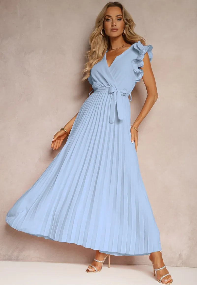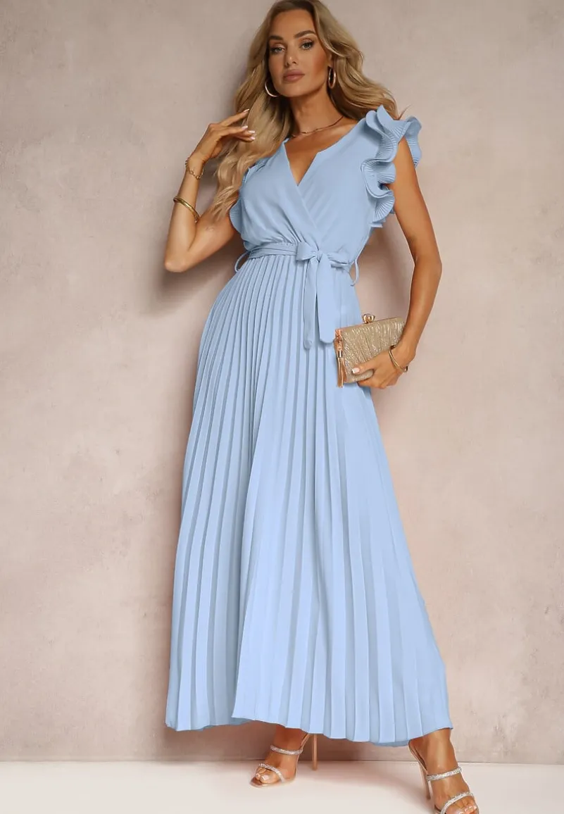 Podaruj sobie odrobinę elegancji z sukienką kopertową Tiamatalia, która doskonale wpisuje się w najnowsze trendy. Jej przemyślany fason z gumką w pasie i dołączony materiałowy pasek pięknie podkreślają talię, modelując sylwetkę w zjawiskowy sposób. Falbanki dodają lekkości i romantycznego charakteru, tworząc wyjątkowo kobiece wykończenie przy dekolcie i na rękawach. Idealna na eleganckie przyjęcie w towarzystwie szpilek i kopertówki. Ta sukienka będzie Twoją tajemnicą idealnego looku, bez względu na okoliczność!