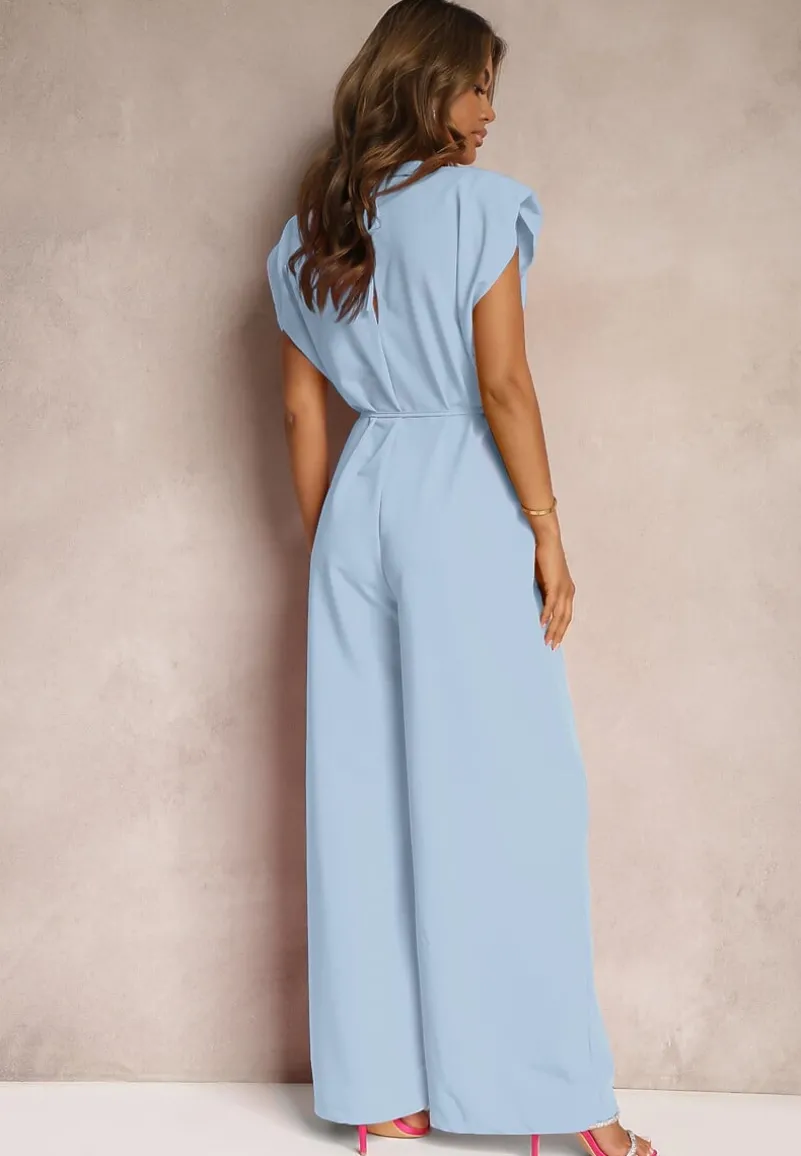 Odkryj kombinezon z Wiskozą , który zachwyca subtelnym dekoltem w kształcie litery V i efektownym elementem 3D w talii – idealny na każde spotkanie. Prosty, ale wyrafinowany krój z usztywnianymi ramionami i wsuwanymi kieszeniami z szerokimi nogawkami zapewnia elegancję. Ten uniwersalny model sprawdzi się na wyjątkowe okazje – wystarczy zmiana dodatków! Na wieczorne wyjście wybierz klasyczne szpilki i minimalistyczną biżuterię.