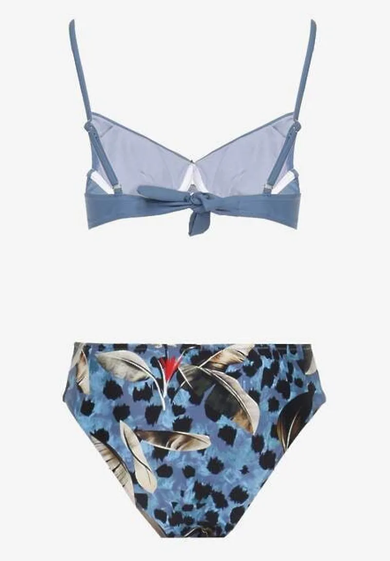 Niebieski Strój Kąpielowy Bikini z Usztywnionym Biustonoszem i Wzorzystymi Figami Pialette
