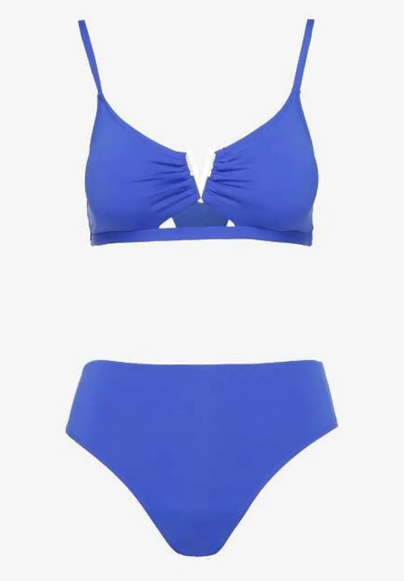 Niebieskie Bikini Majtki Figi i Biustonosz Ozdobiony Metaliczną Aplikacją Kinniela