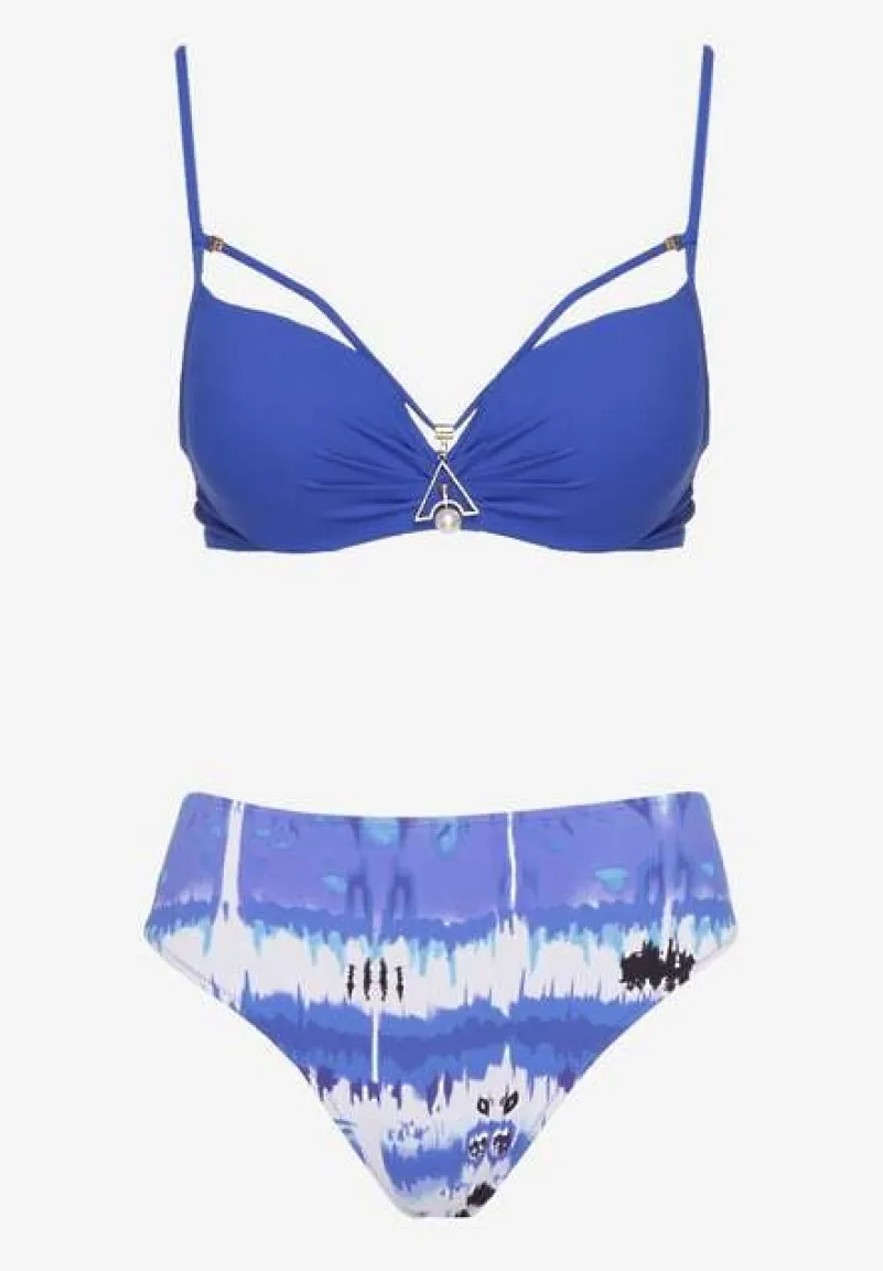 Niebieskie Bikini Majtki Figi i Biustonosz Push-Up Ozdobiony Paskami Wiobella