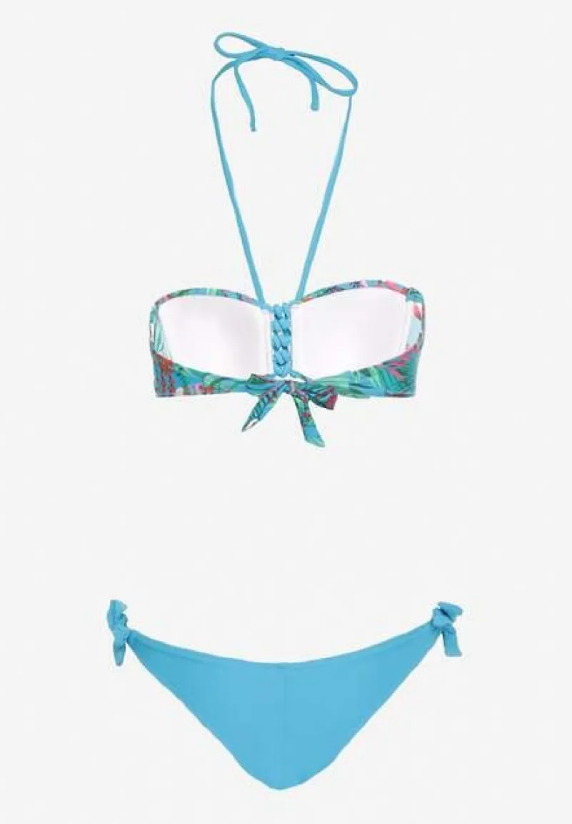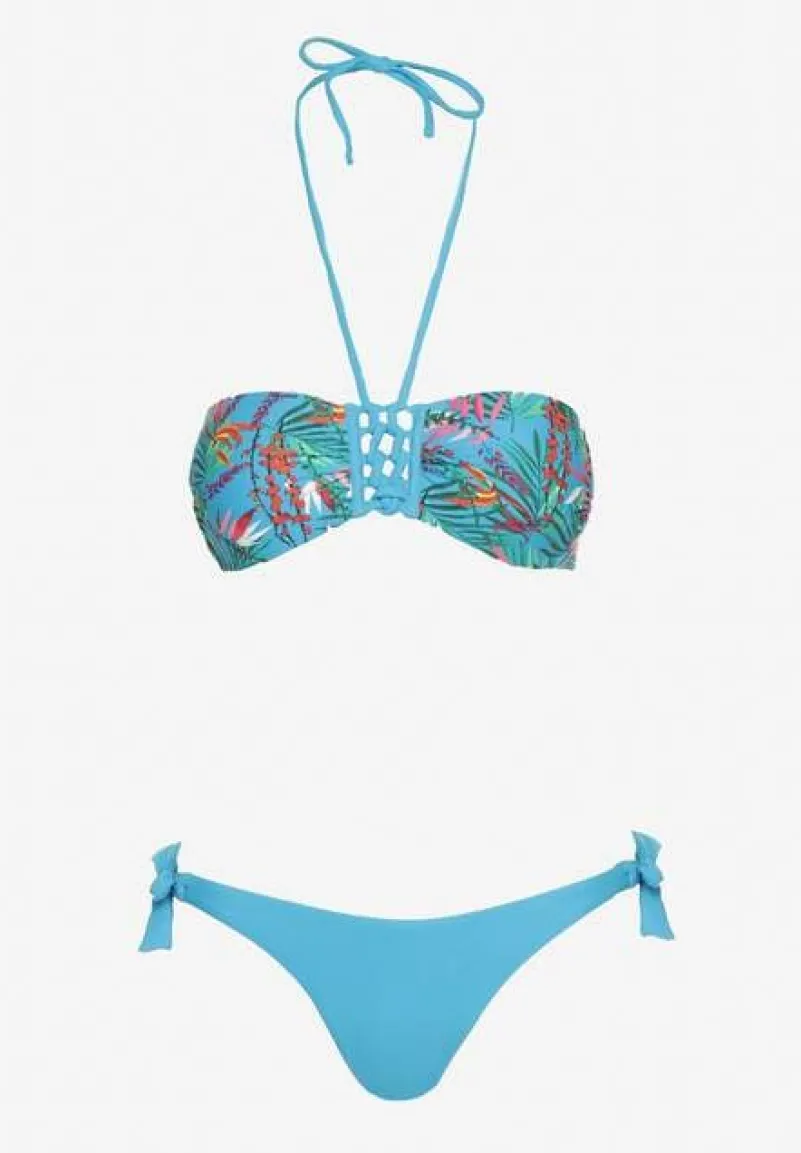Niebieskie Bikini Majtki Figi ze Sznurkami po Bokach i Usztywniany Biustonosz z Wiązaniem Natmarie