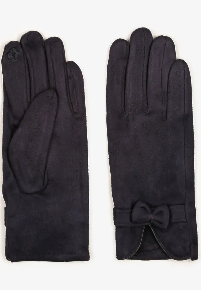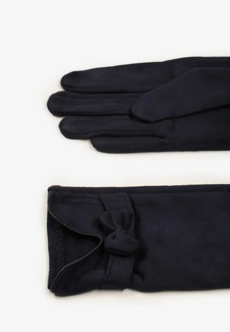 Niebieskie Rękawiczki Dzianinowe z Bawełną Ozdobione Kokardą Tessemi