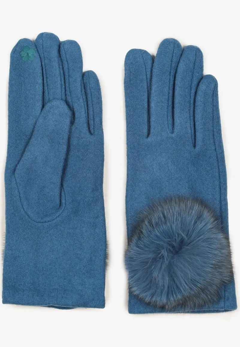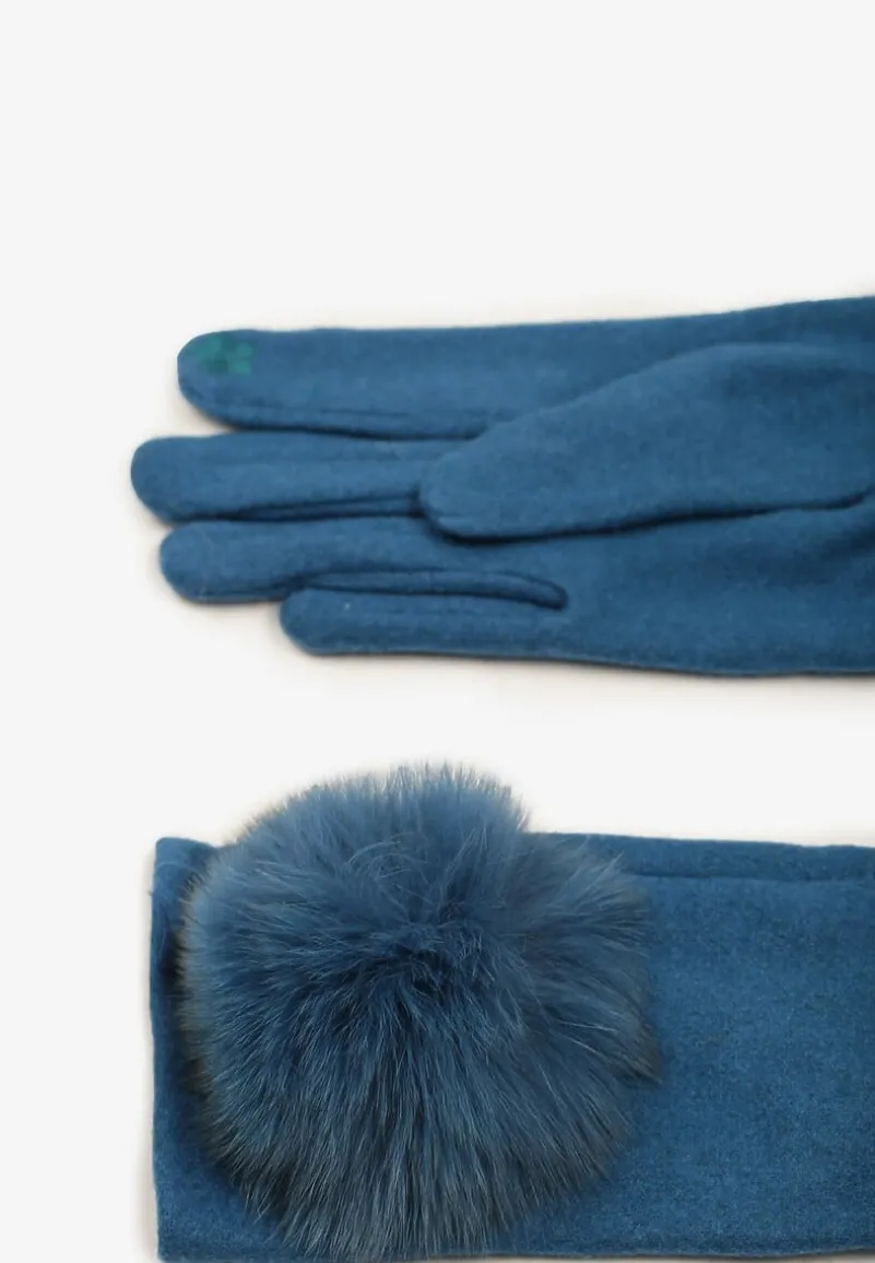 Niebieskie Rękawiczki z Bawełną Ozdobione Futrzanym Pomponem Nadelina