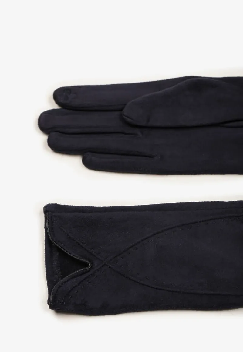 Niebieskie Rękawiczki Zimowe z Bawełną Ozdobione Przeszyciami Delatlina