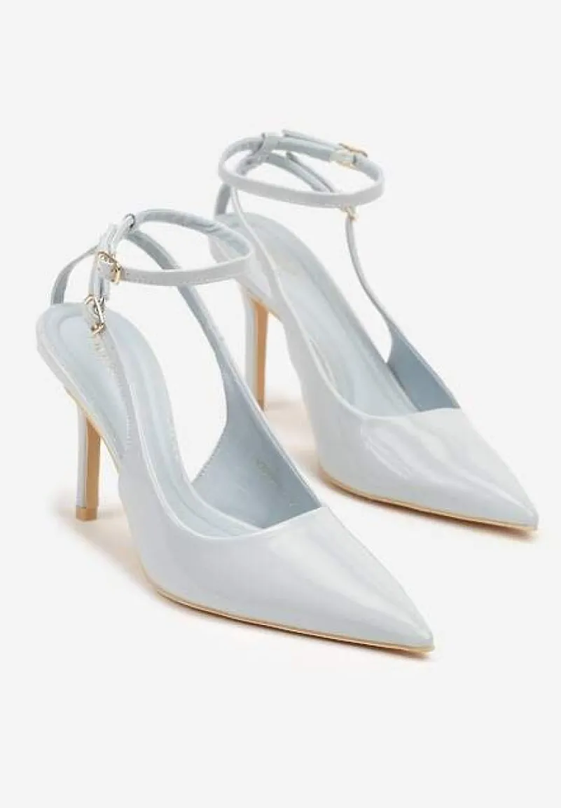 Niebieskie Sandały Lakierowane Vices na Szpilce Typu Slingback Dolenita