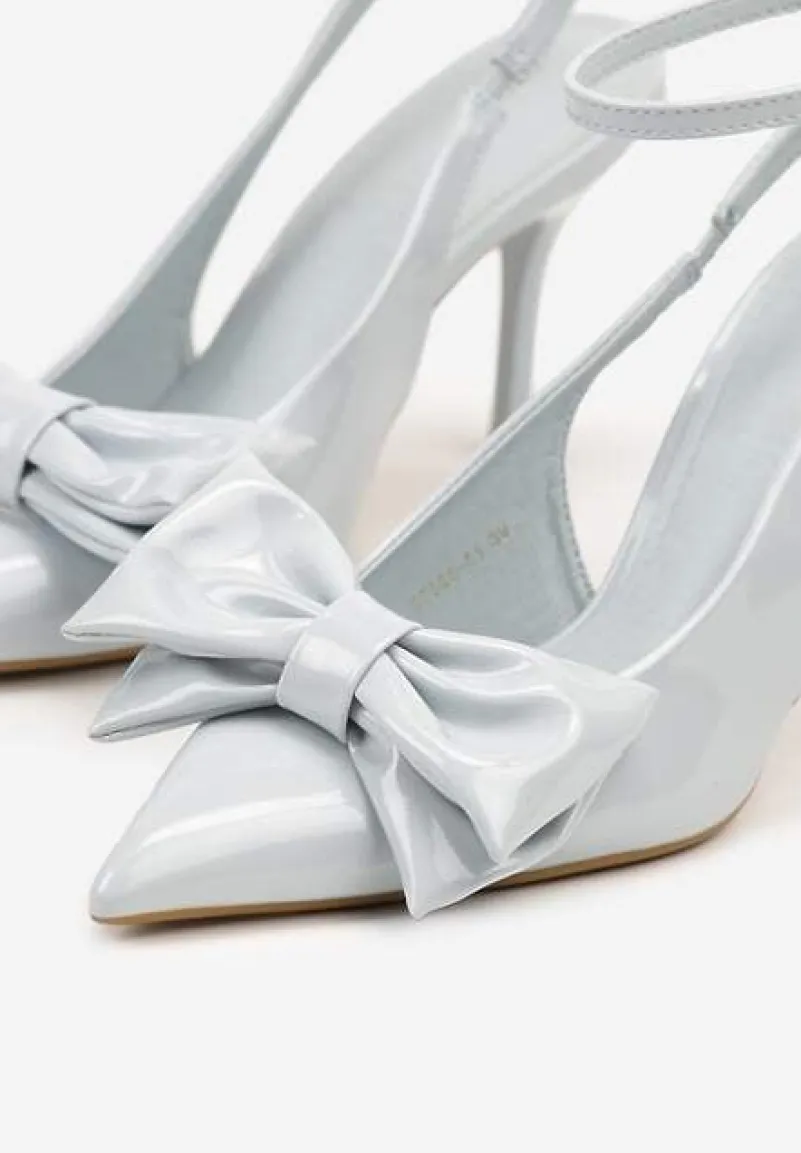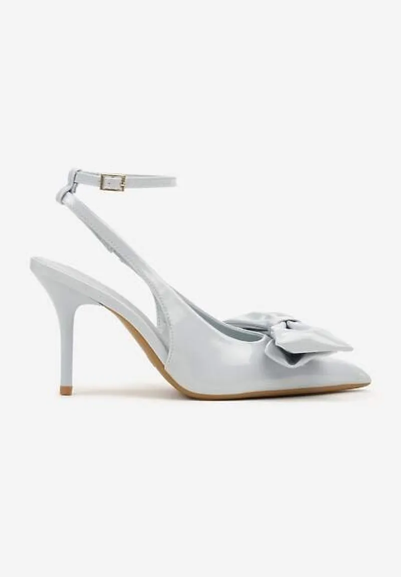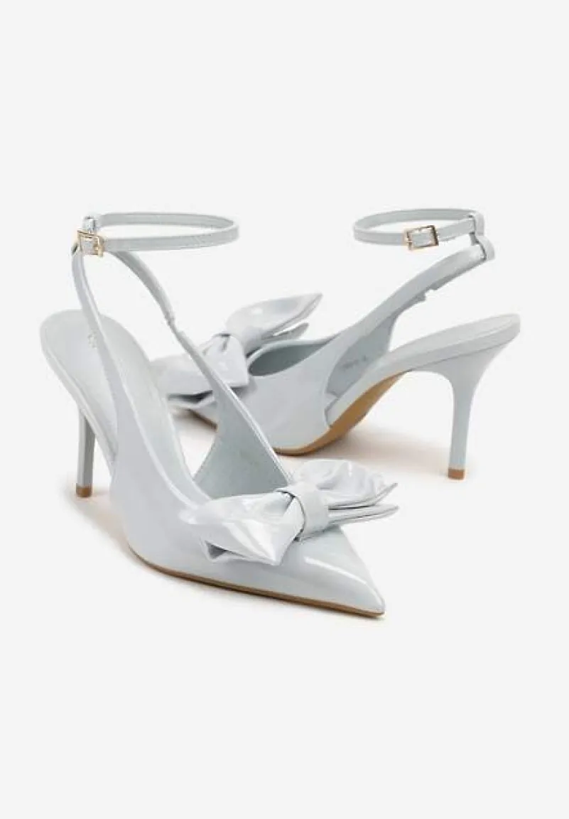 Niebieskie Sandały na Szpilce Vices z Dużą Kokardką Bez Pięty Velozia