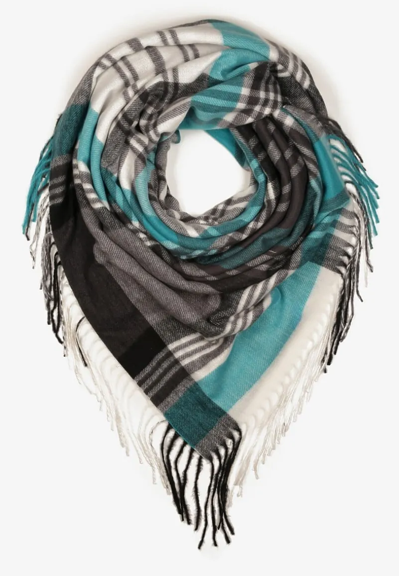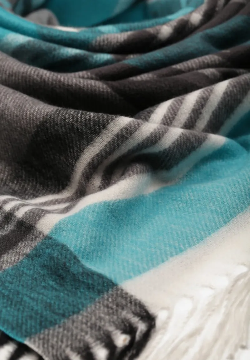 Szalik chusta Relavis z bawełny i wiskozy inspirowany stylem retro, ozdobiony kratą i frędzlami. To idealny dodatek na zimowe spacery, który ochroni przed zimnem i doda charakteru.