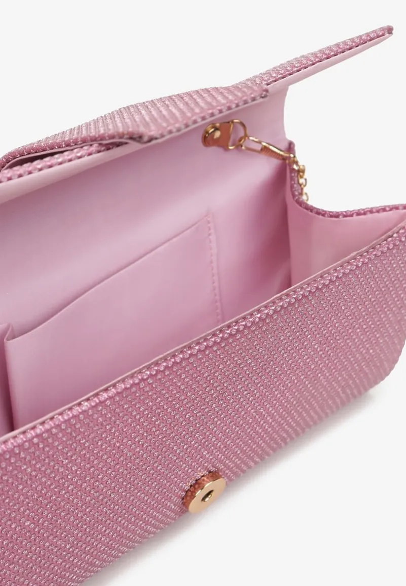 Torebka Skimette na łańcuszku, zapinana klapą na zapięciu magnetycznym, ozdobiona brokatem