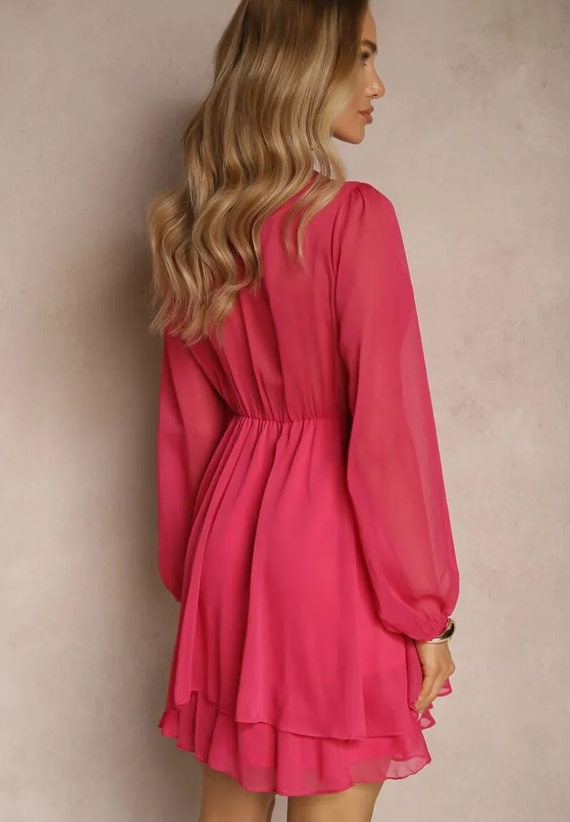 Be the first to review “Różowa Kopertowa Sukienka z Prześwitującymi Rękawami o Rozkloszowanym Dole Ninelira” Anuluj pisanie odpowiedzi