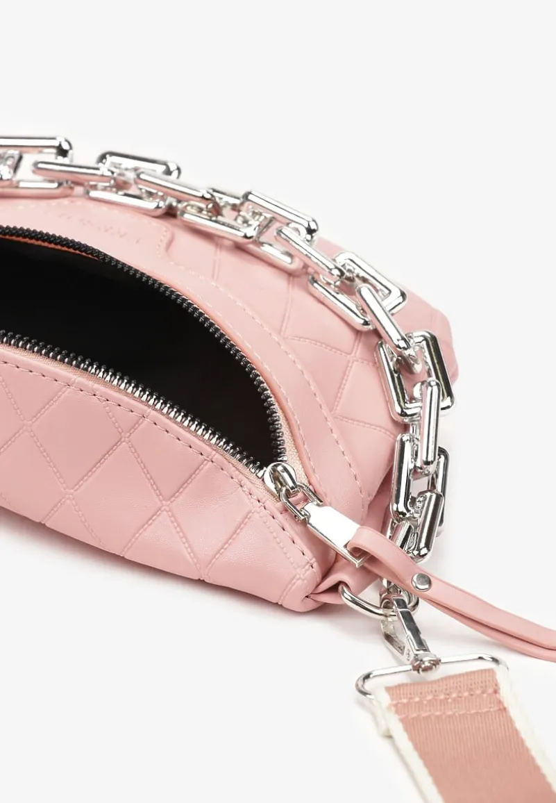 Nerka Polonia zapinana na zamek błyskawiczny z dekoracyjną zawieszką na końcu. Wykonana z ekoskóry ze stylowym tłoczeniem. Z regulowanym, materiałowym paskiem na karabińczykach oraz rączką z metalowego łańcucha. To praktyczna propozycja do codziennego użytku.
