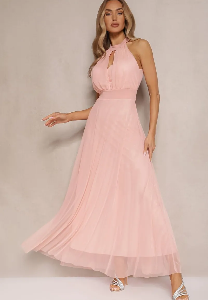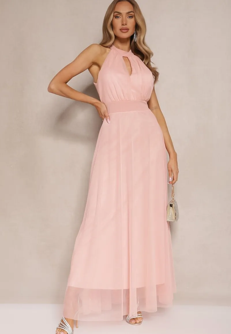Beżowe Eleganckie Sandały na Słupku z Cyrkoniowymi Paskami Merilinae