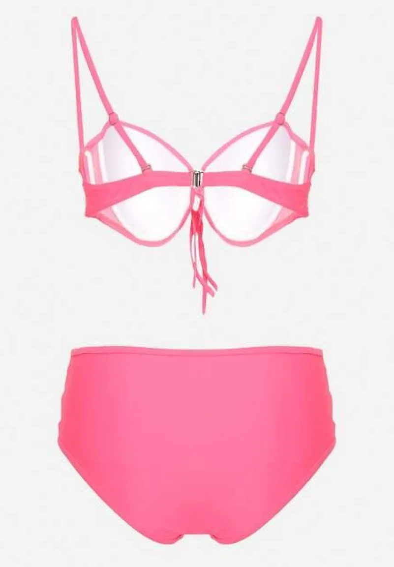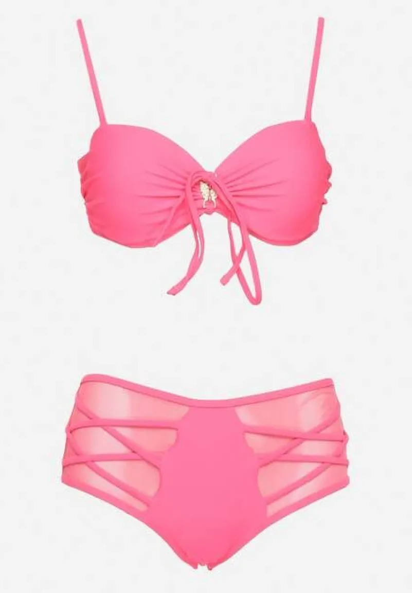 Różowe Bikini Biustonosz i Majtki Figi High Waist z Siateczkowymi Zdobieniami Kinovia