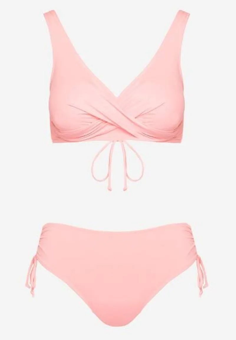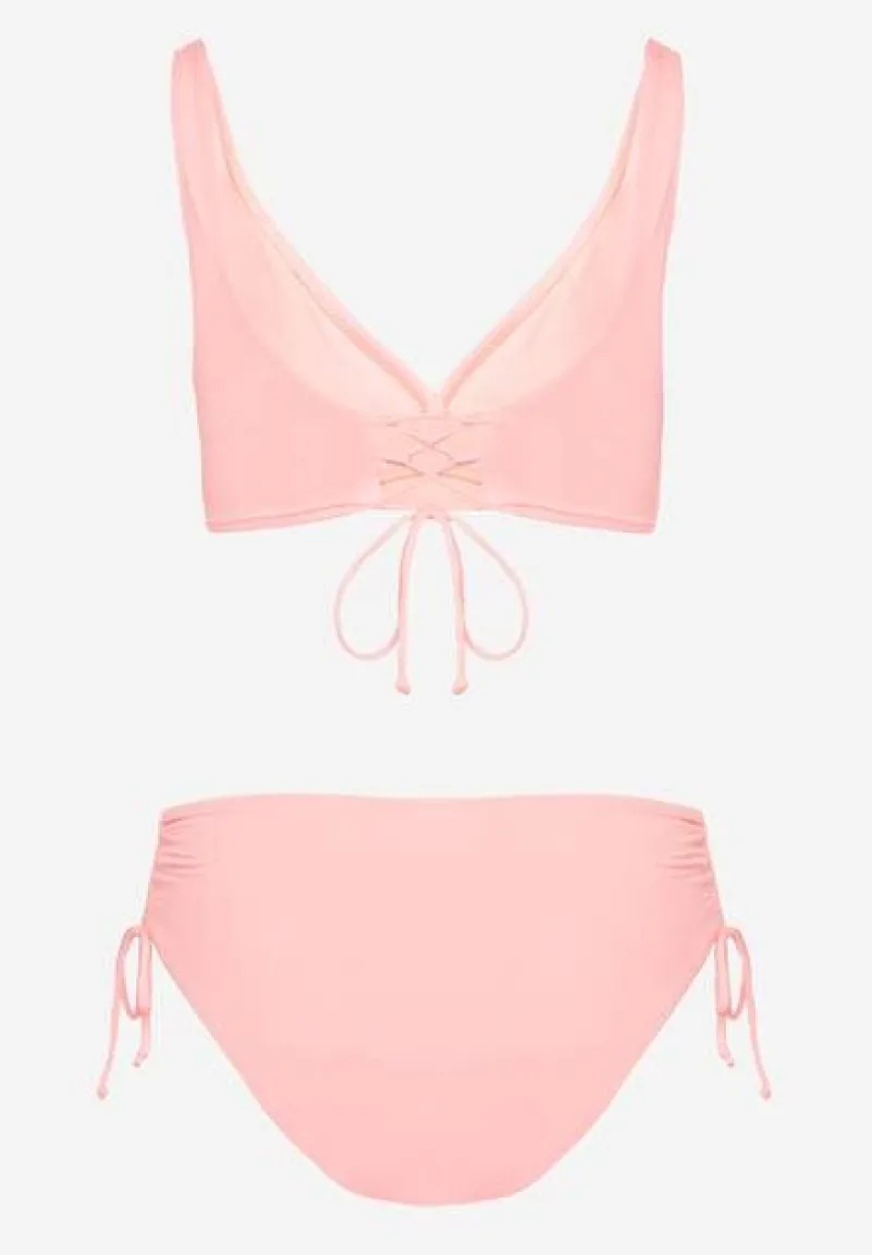 Różowe Bikini Biustonosz i Majtki Figi z Wiązaniem Kinalisa
