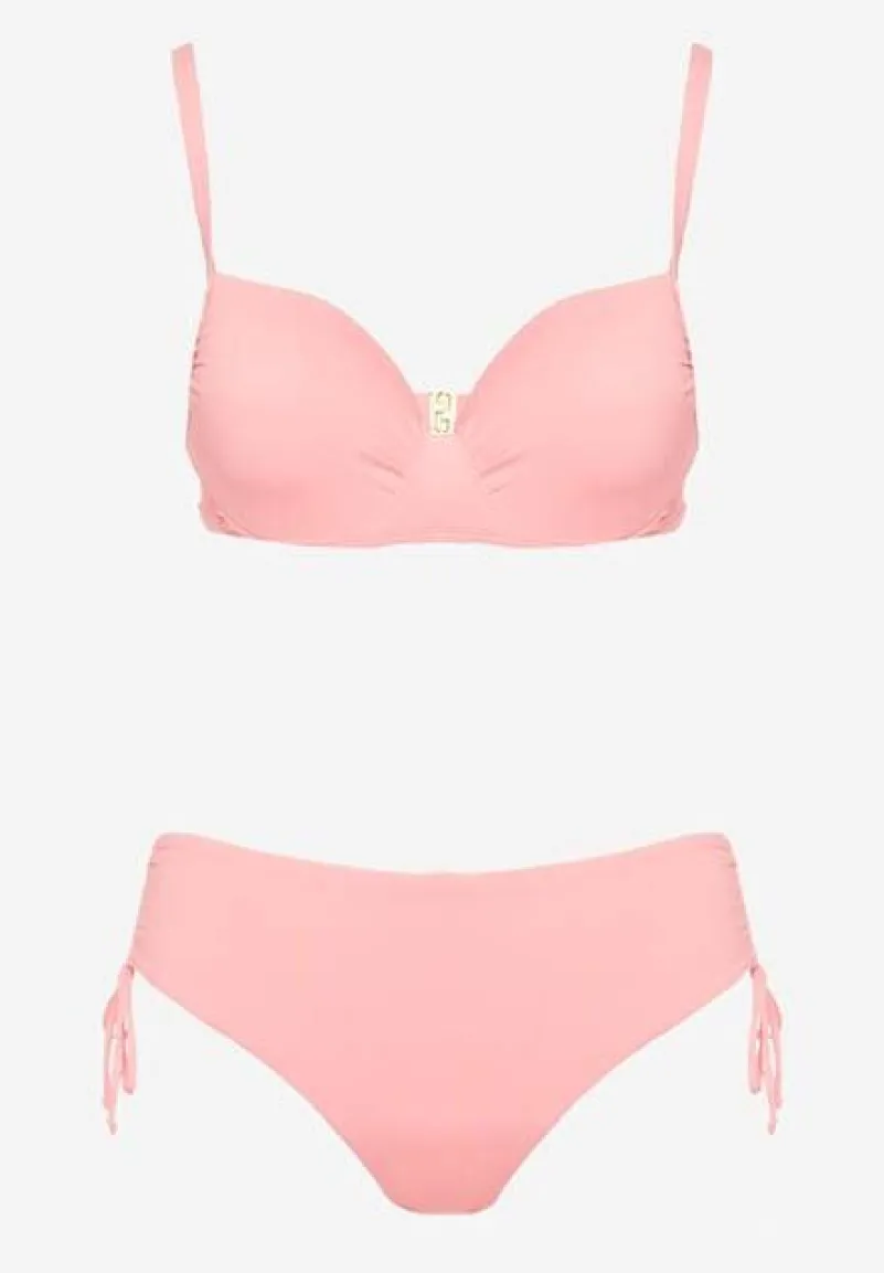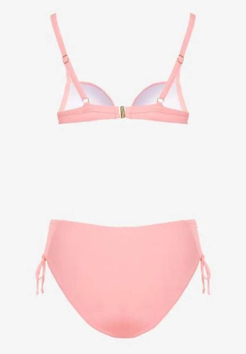Różowe Bikini Biustonosz z Usztywnianymi Miseczkami Majtki Figi Ozdobione Troczkami Tamarie