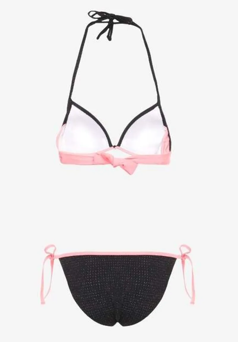 Różowe Bikini Dwuczęściowe Wiązany Biustonosz i Figi ze Sznurkami Lutella