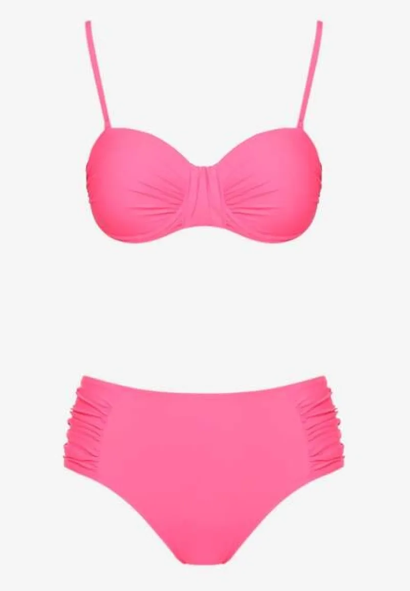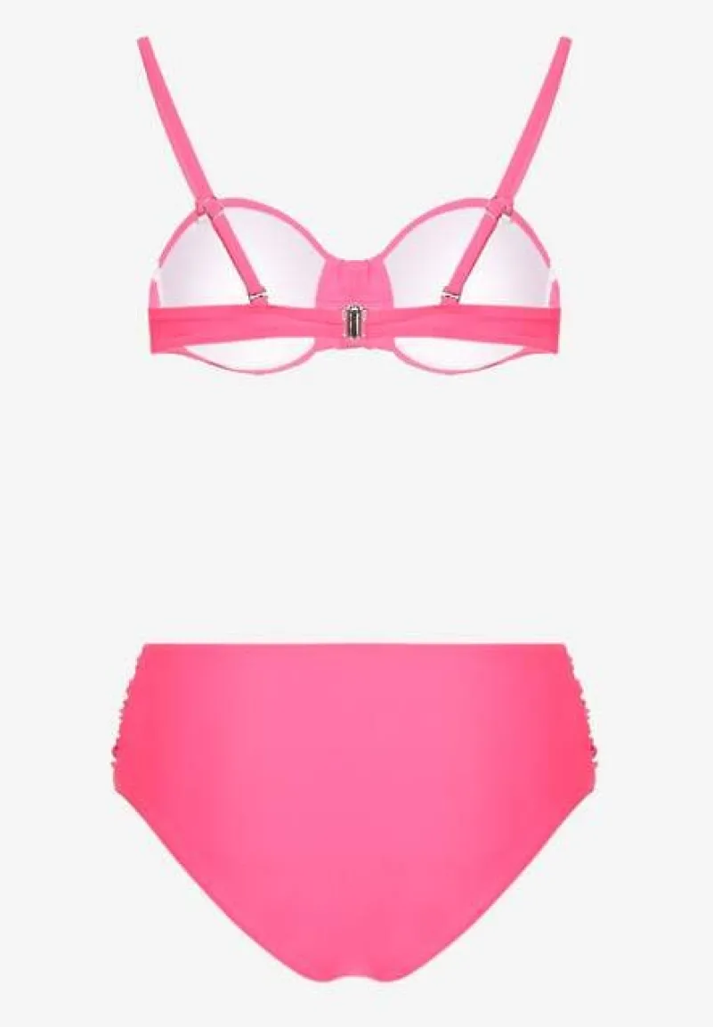 Różowe Bikini Figi i Usztywniany Biustonosz z Marszczeniem Vintelle