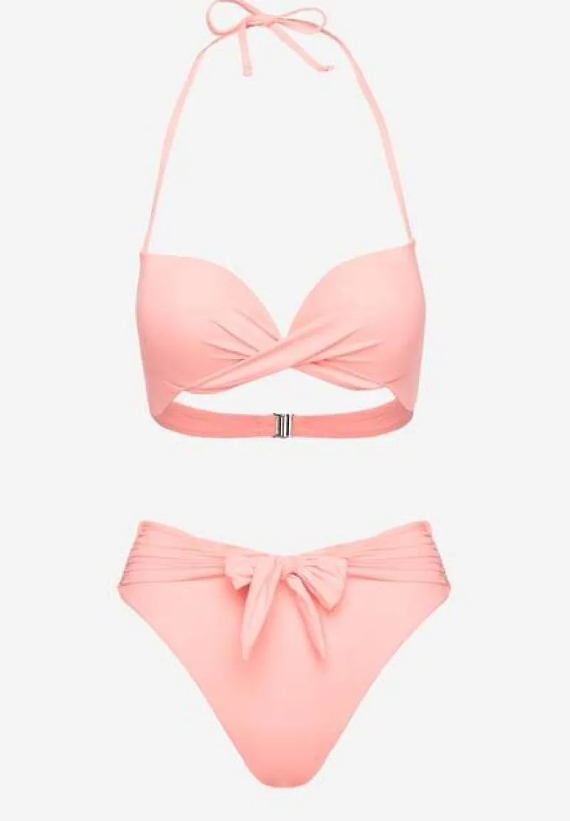 Różowe Bikini Majtki Figi i Biustonosz Ozdobione Wiązaniem Saniorie