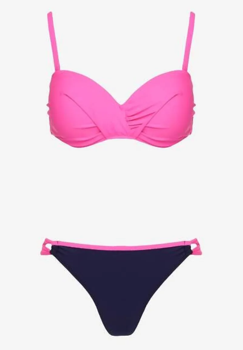 Różowe Bikini Majtki Figi i Biustonosz z Marszczeniem Sepiana