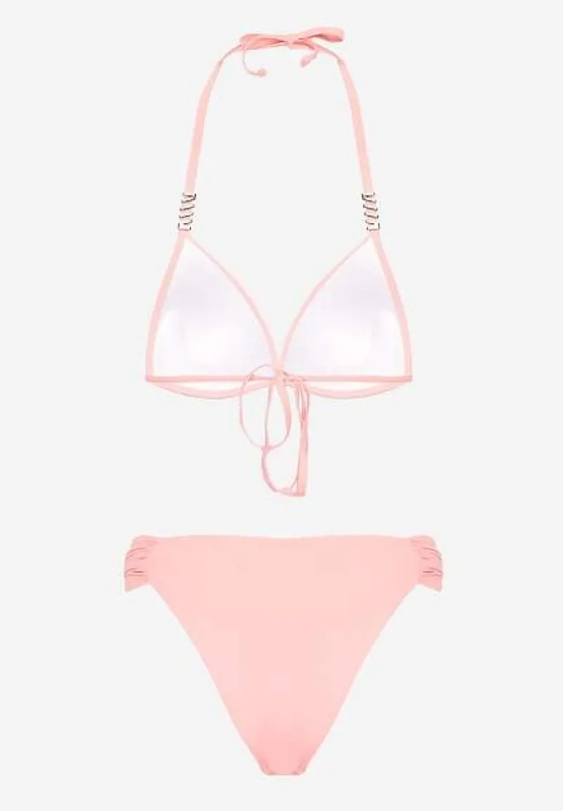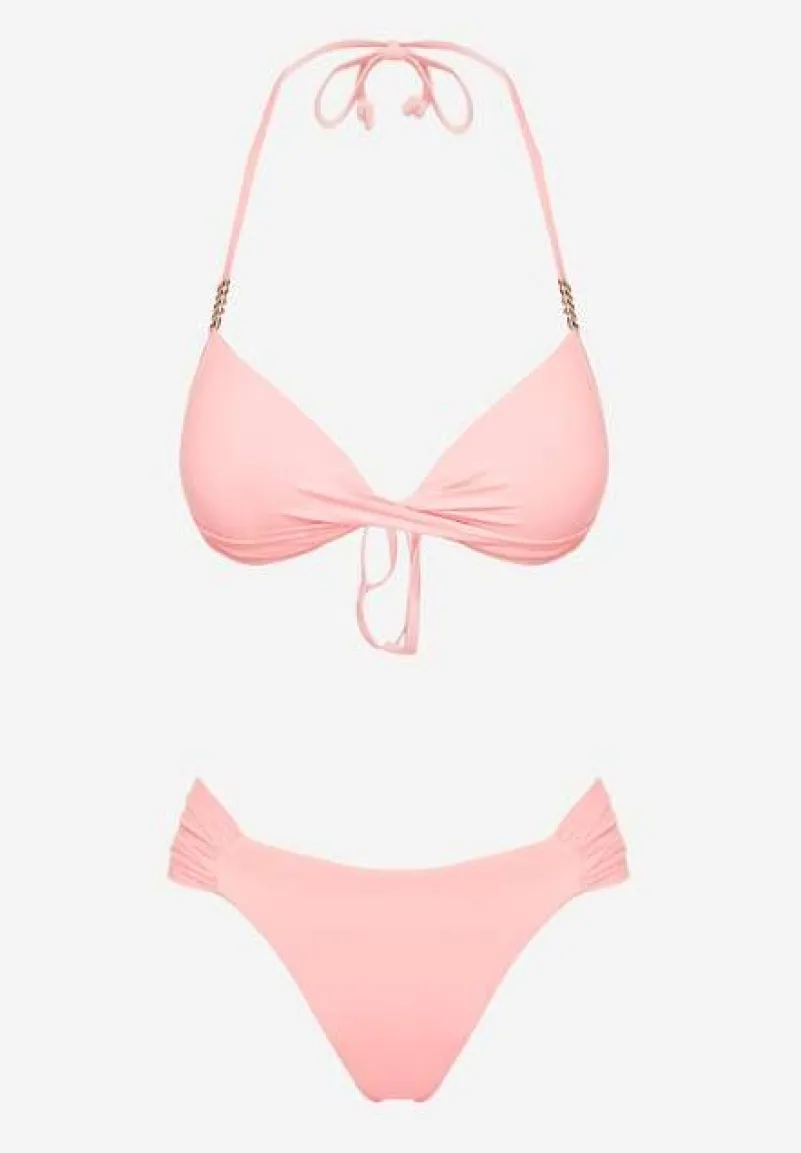 Różowe Bikini Wiązany Biustonosz Push Up i Majtki Typu Figi Mirisenia