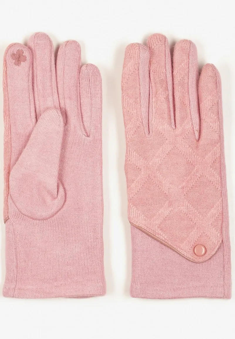 Różowe Dzianinowe Rękawiczki Eleganckie z Ozdobnym Guzikiem Senindra