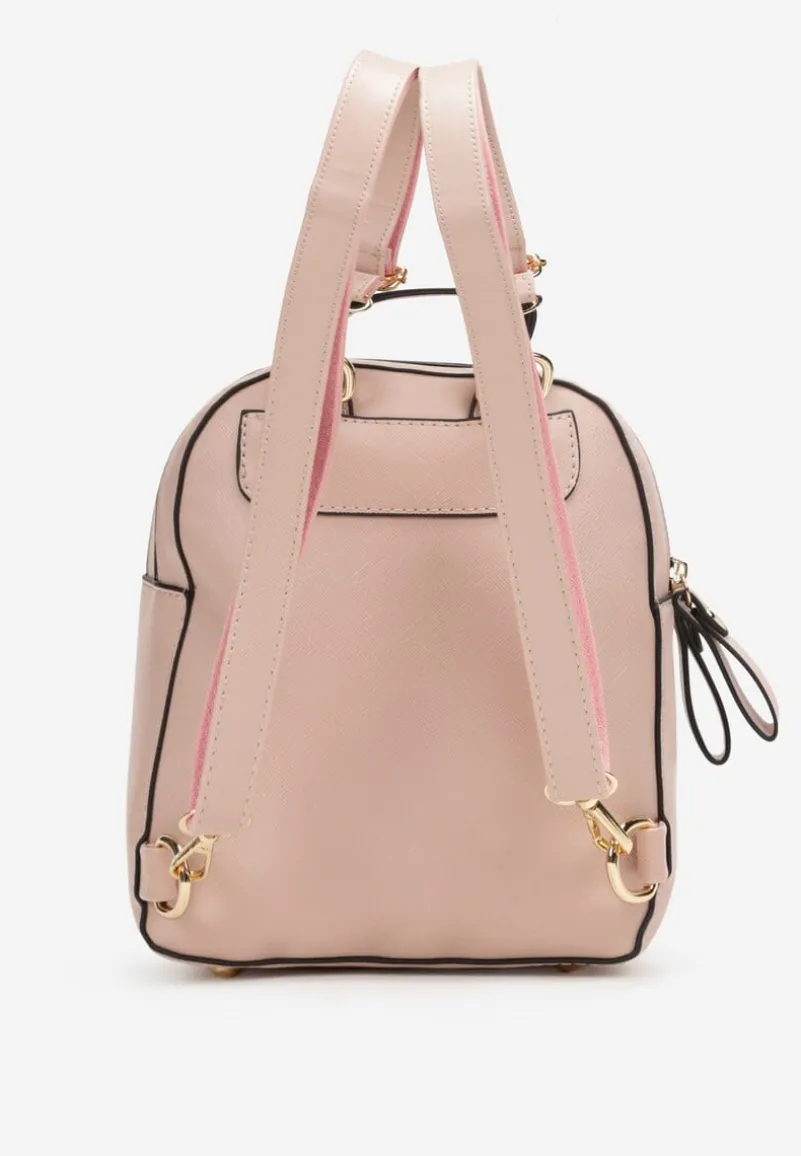 Dwukomorowy plecak Kinosa wykonany z imitacji skóry. Zapinany na klasyczny zamek błyskawiczny. Z przodu mała kieszonka z magnetycznym zatrzaskiem. Szelki można regulować.