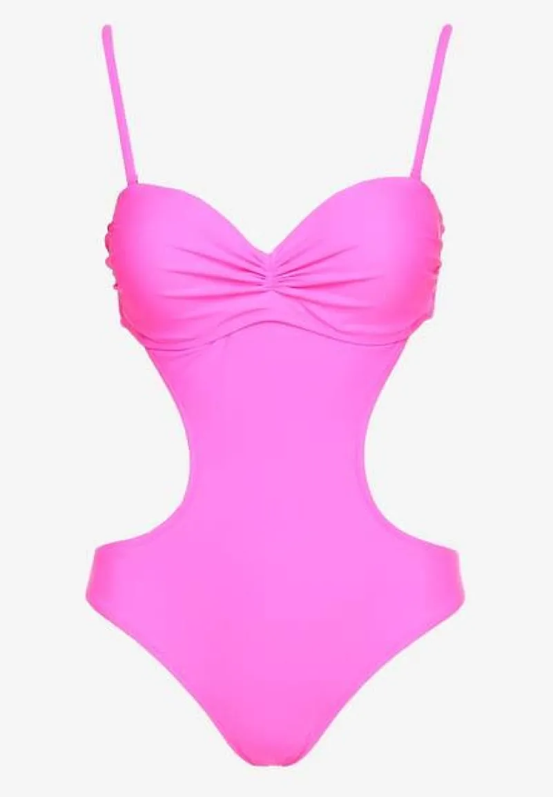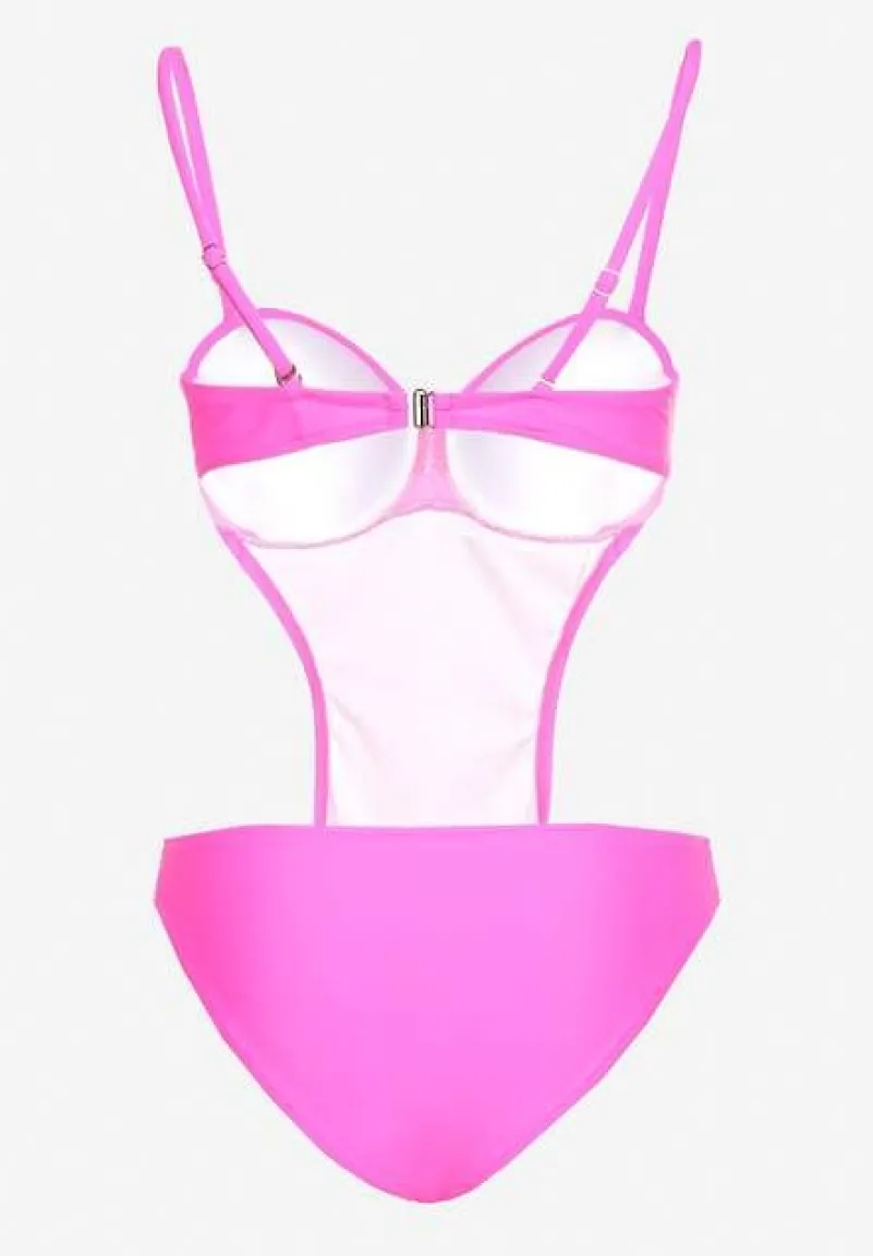 Różowy Strój Kąpielowy Jednoczęściowy z Wycięciami w Talii i na Plecach Tovantia