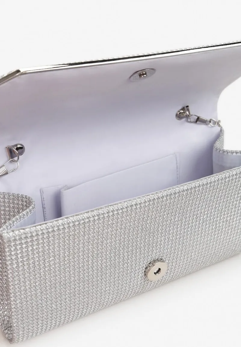 Brokatowa torebka Eilikka, którą możesz zabrać ze sobą na wesele, studniówkę czy inne ważne przyjęcie. Model o fasonie kopertówki z cienkim łańcuszkiem. Zapinana na magnetyczną klapę.