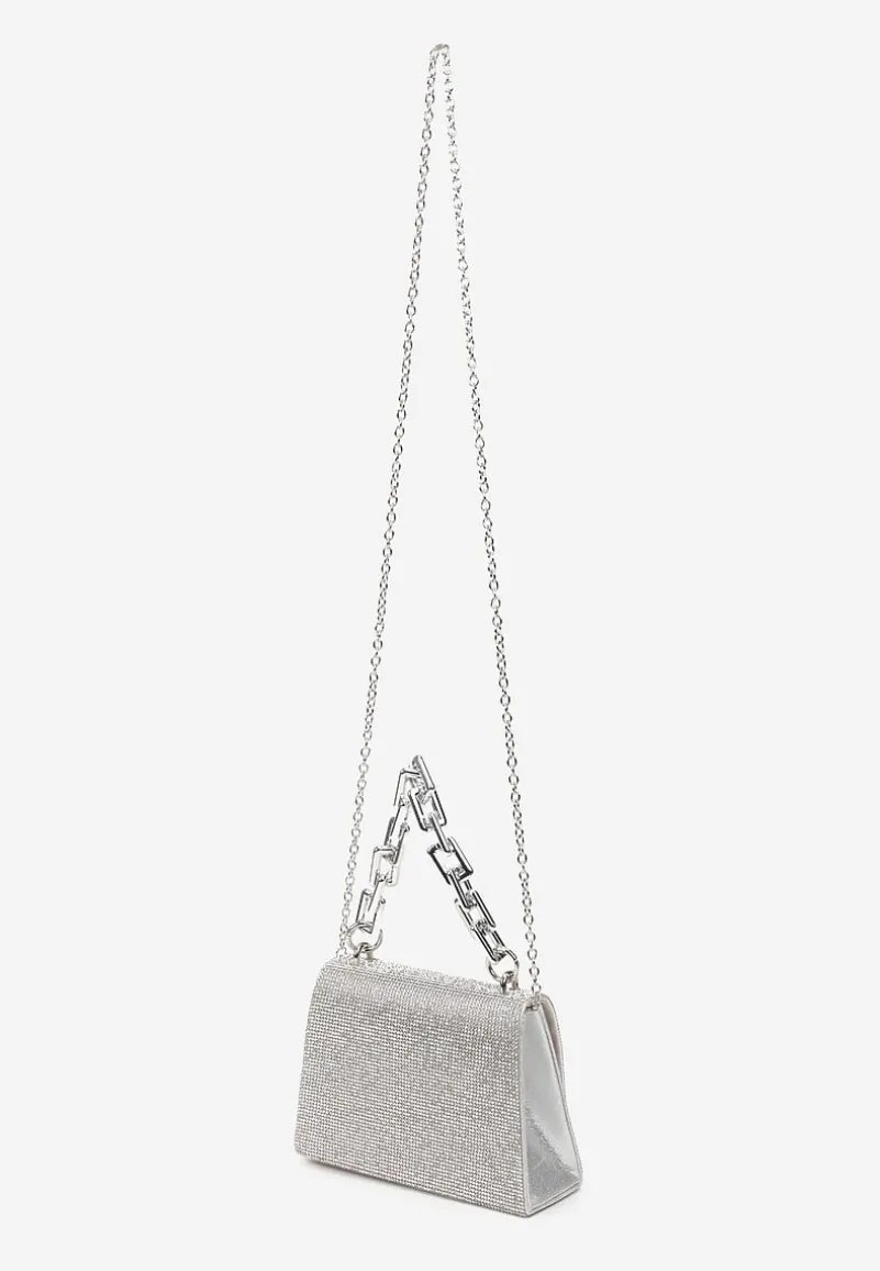 Jednokomorowa torebka Trevana zawieszona na grubym łańcuchu. W środku jedna komora, zapinana na klapę z magnetycznym zapięciem. W zestawie dodatkowo cienki łańcuszek. Torebka Trevana ozdobiona cyrkoniami zrobi wrażenie na każdej imprezie!