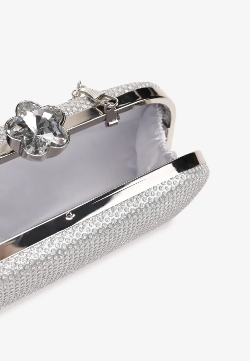 Mała torebka Maleta o fasonie kopertówki zamykanej na zatrzask zdobiony cyrkoniami. Możesz złapać ją w rękę lub zawiesić na łańcuszku. Wykonana z brokatowej ekoskóry. Idealna do eleganckich stylizacji.