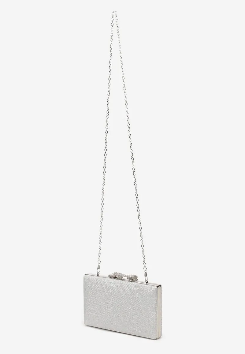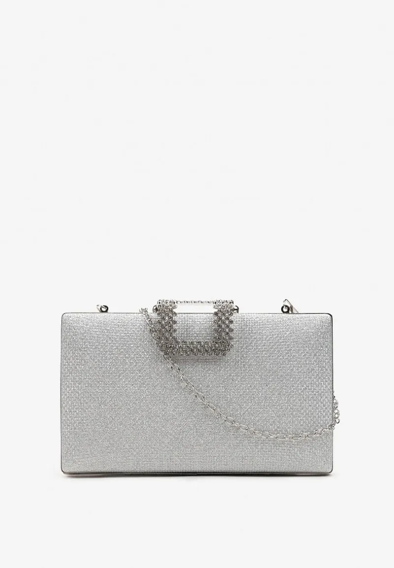 Prostokątna torebka Hulicca z odpinanym łańcuszkiem. Jednokomorowa z ozdobnym zapięciem z cyrkoniami. Wykonana z materiału z brokatowym połyskiem, idealna na wielkie wyjścia!