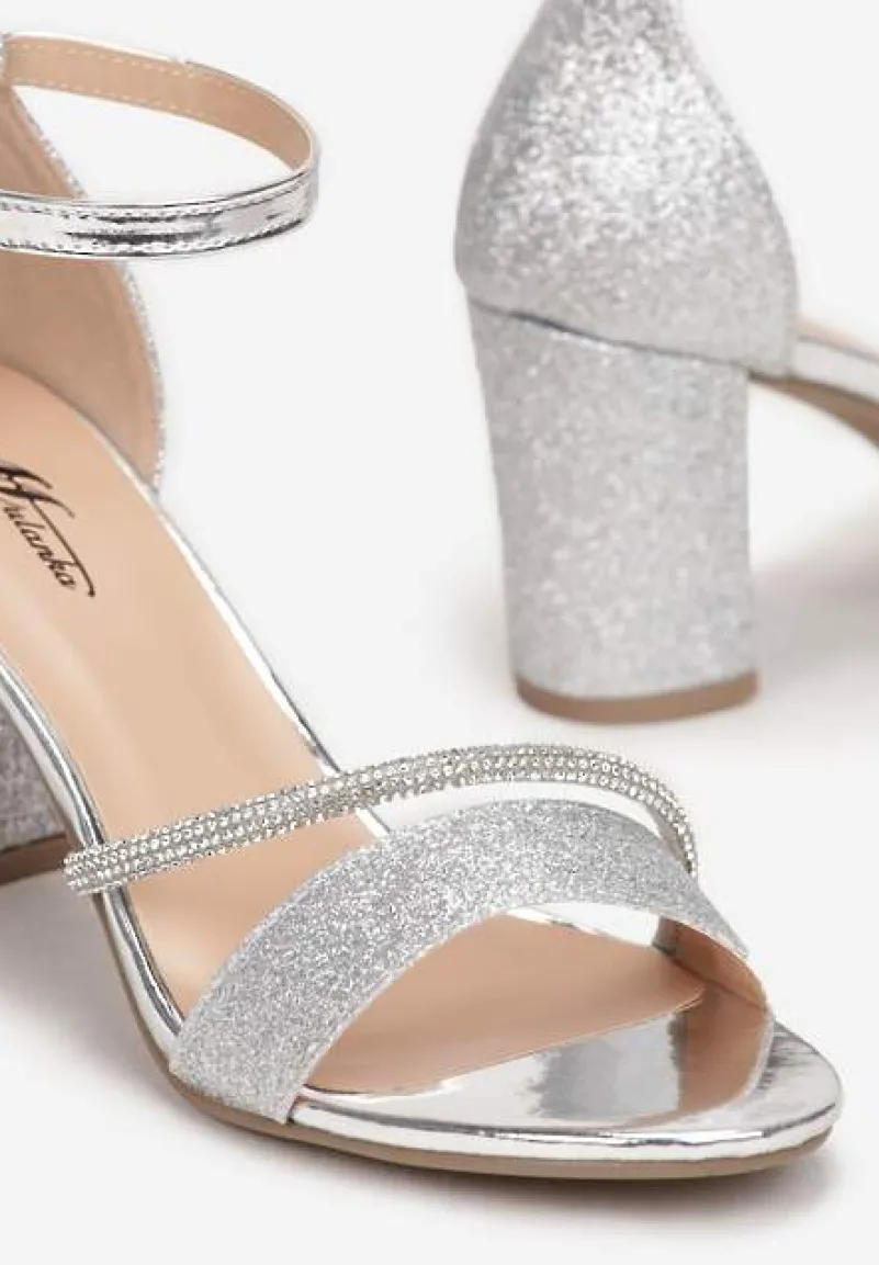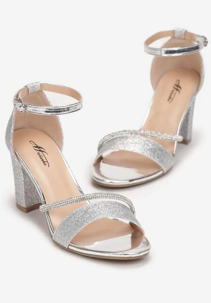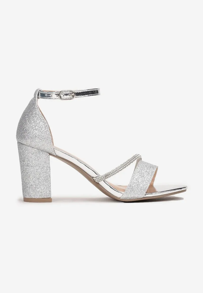 Srebrne Sandały na Słupku z Paskiem z Cyrkonii Leshil