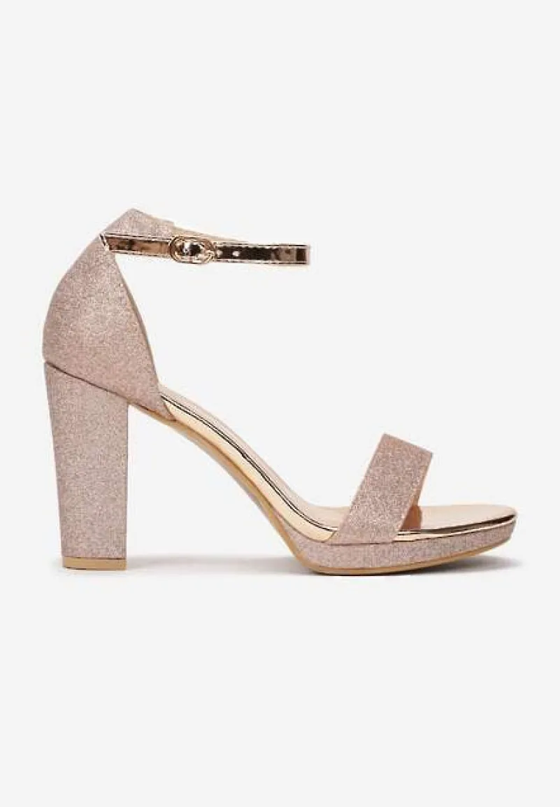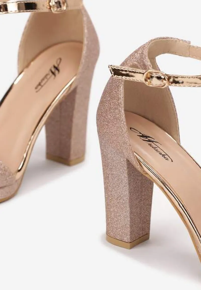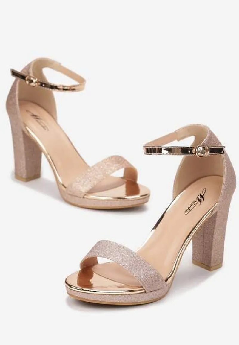 Szampańskie Sandały na Słupku Zdobione Brokatem Aldohr