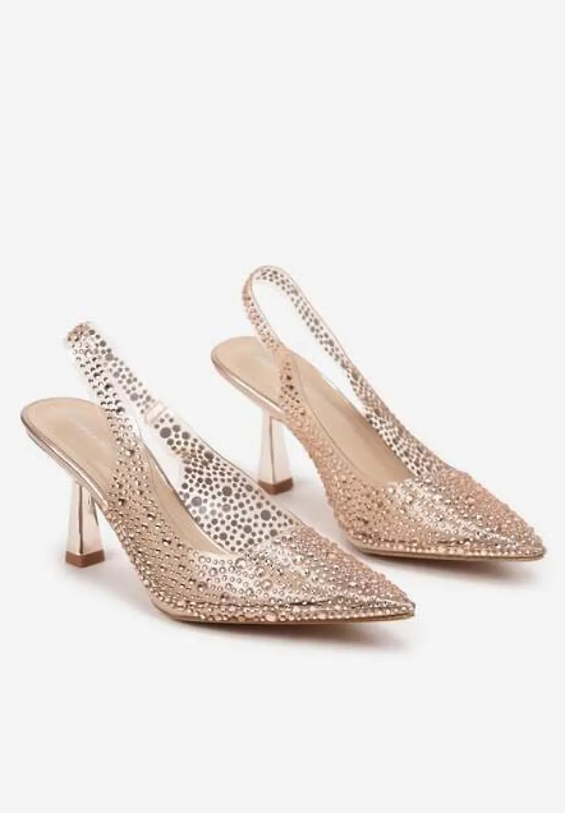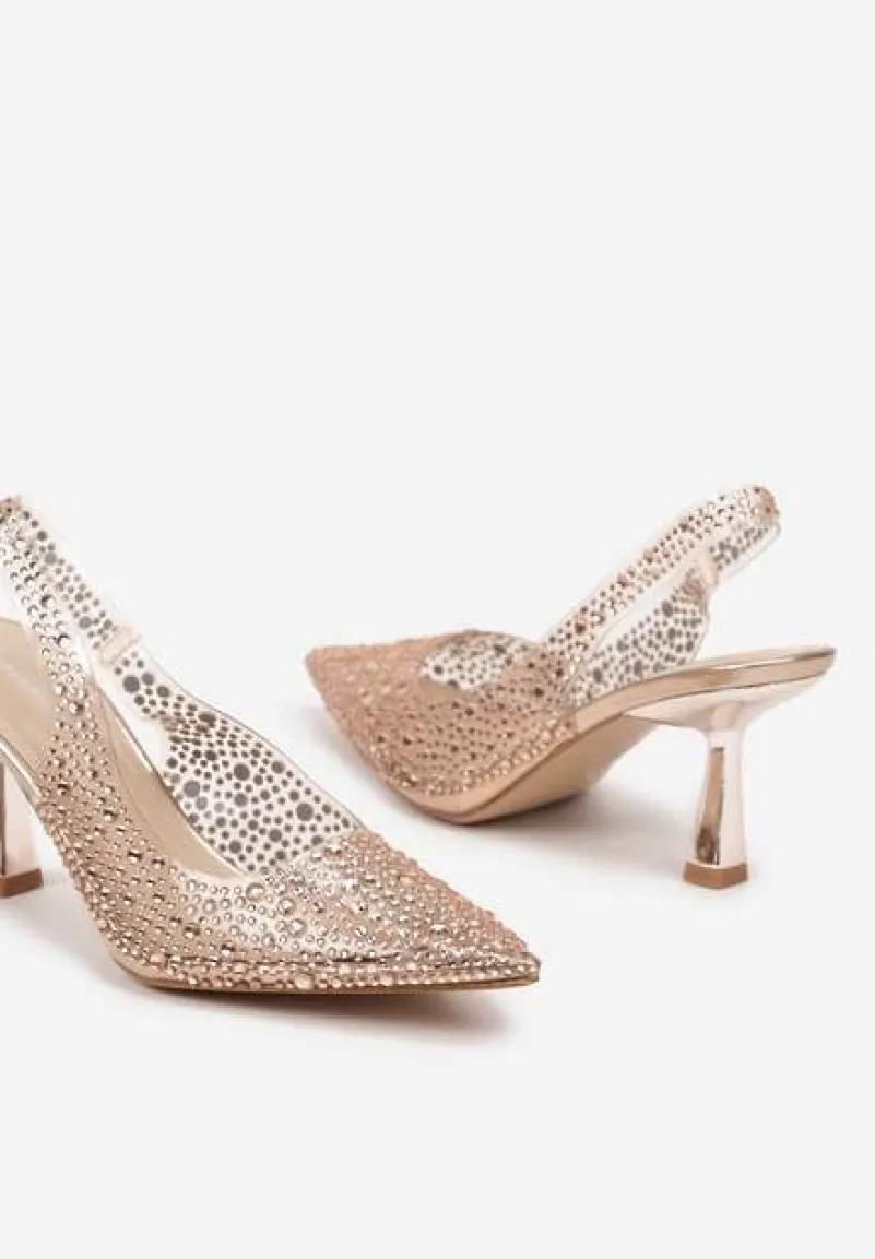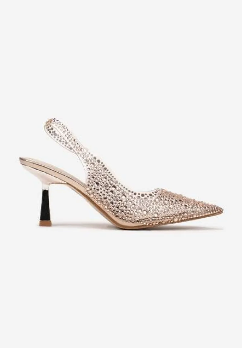 Szampańskie Sandały Szpilki z Noskiem w Szpic Zdobione Cyrkoniami Hanalitia
