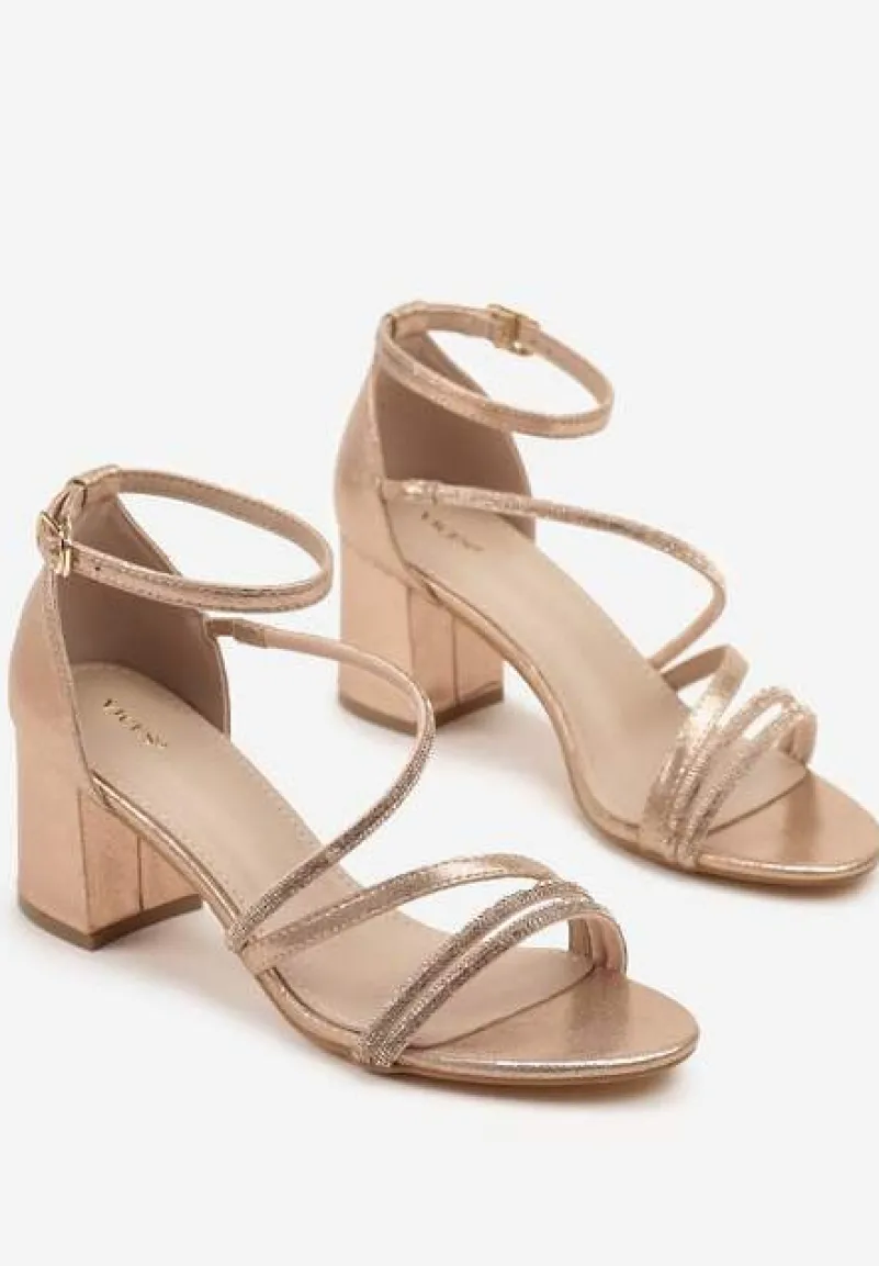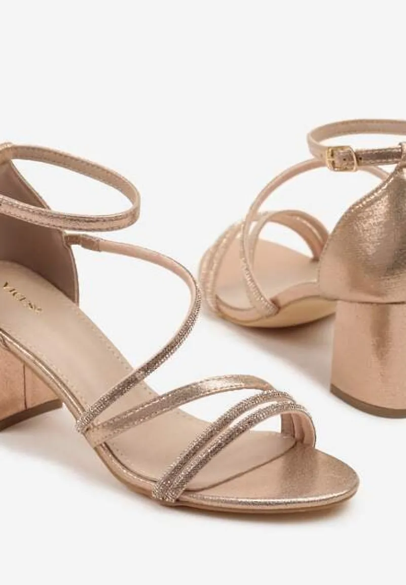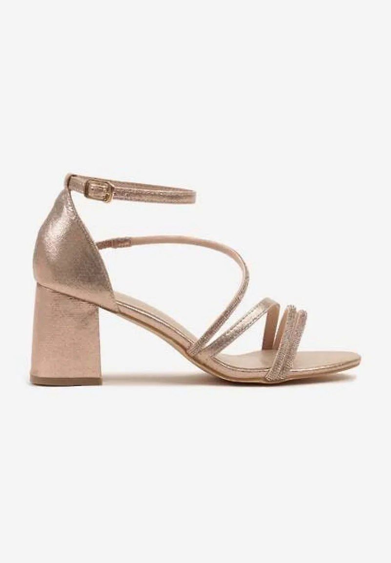 Szampańskie Sandały Vices na Słupku Ozdobione Cyrkoniami Otiriel