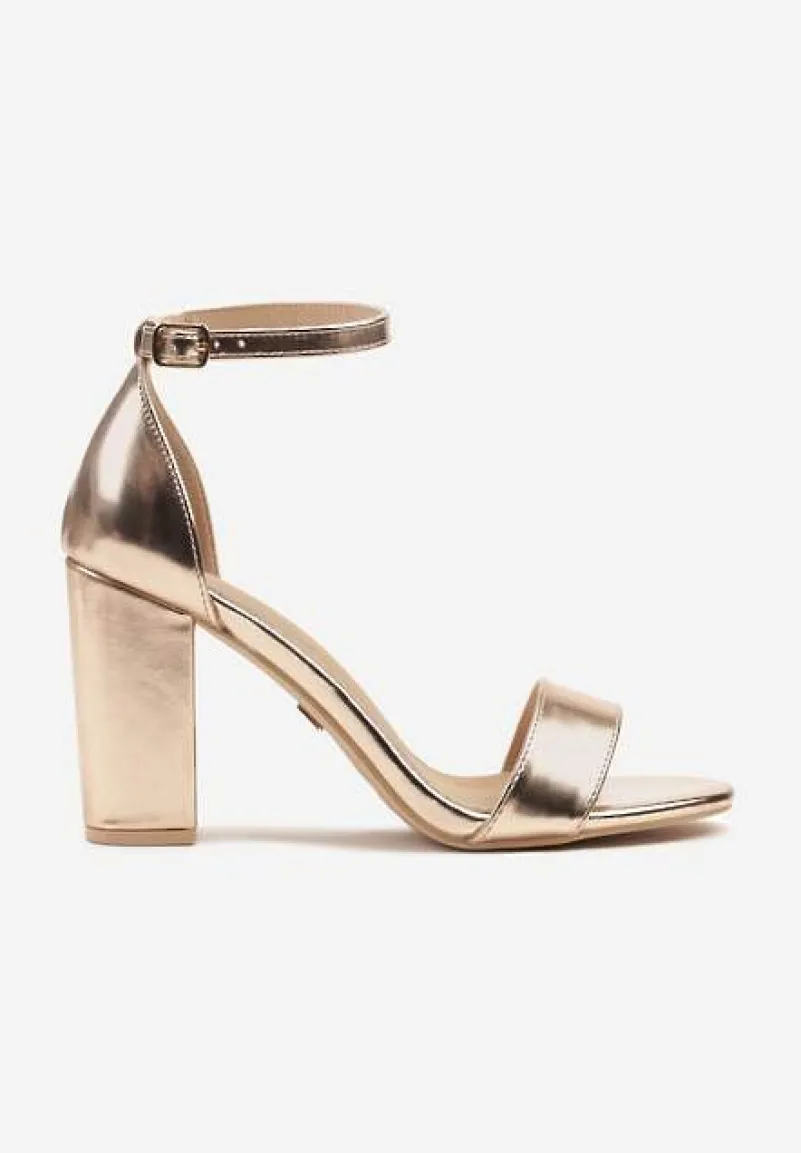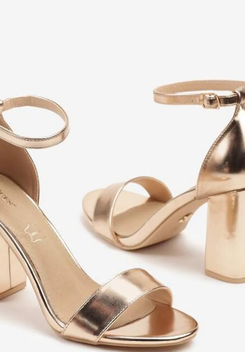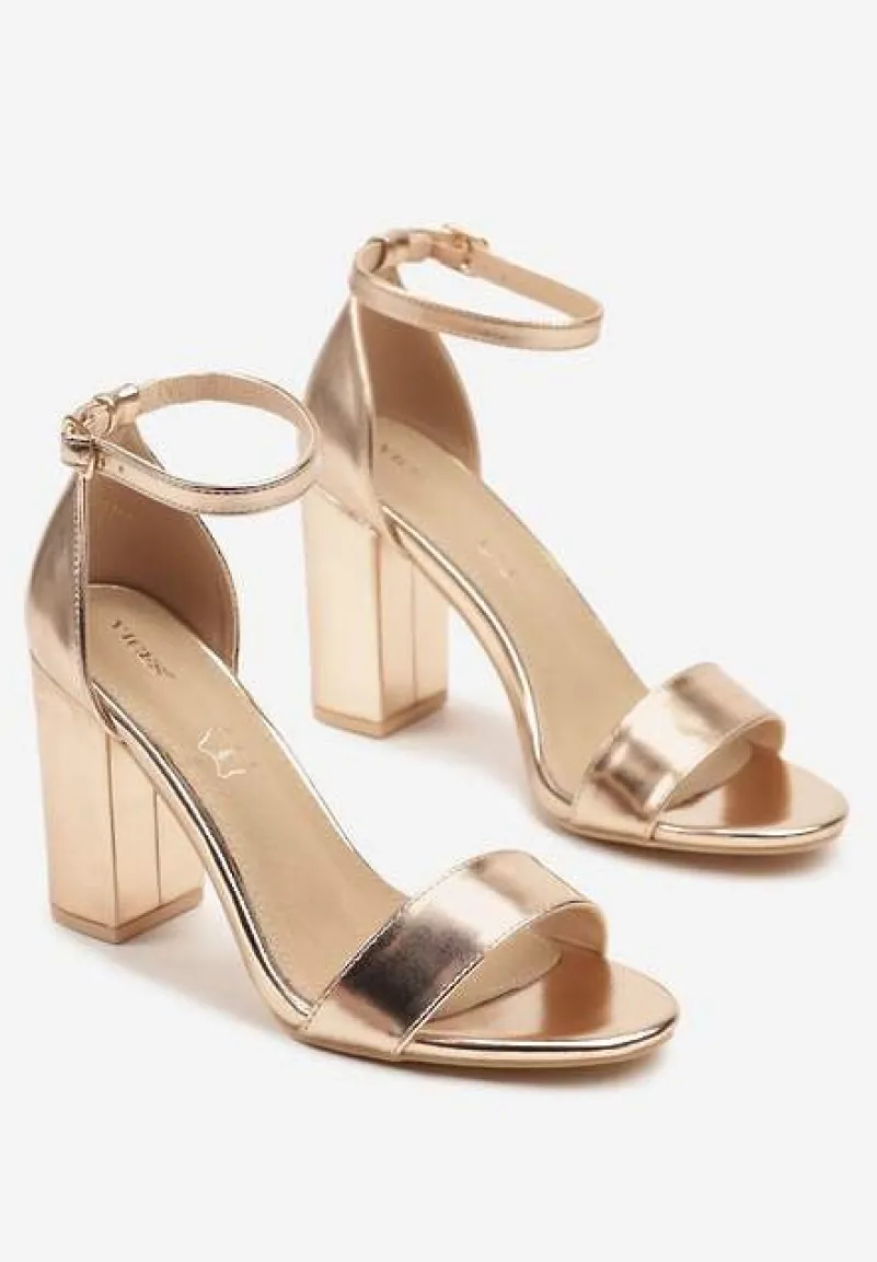 Szampańskie Sandały Vices na Słupku ze Skórzaną Wkładką Ozdobione Paskami Ediritia