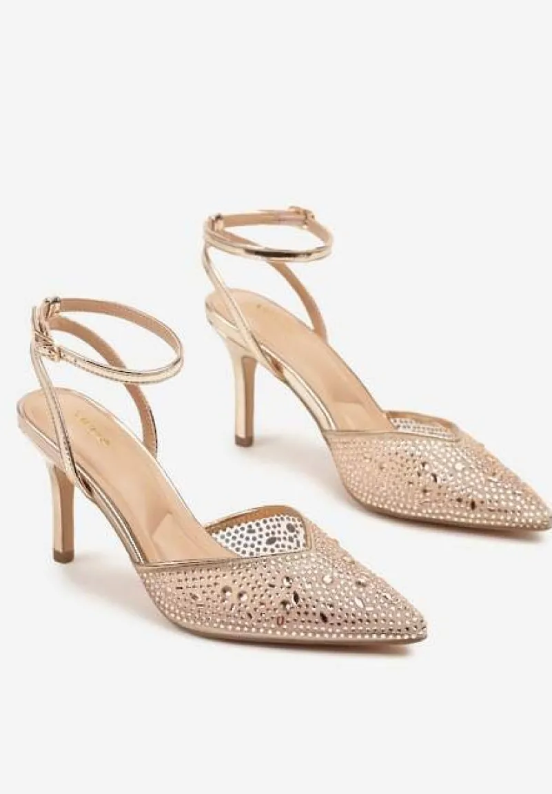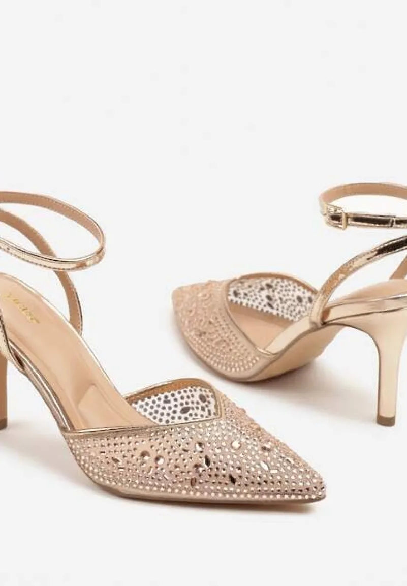 Szampańskie Sandały Vices na Szpilce z Cyrkoniami Ciaranea