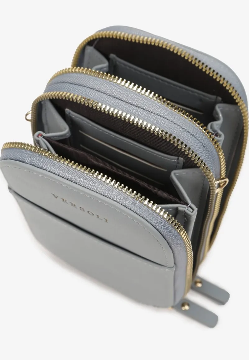 Portfel Foick łączący w sobie niewielką portmonetkę i torebkę na cienkim, odpinanym pasku. Dwukomorowy fason, zamykany na zamek błyskawiczny. W środku przegródki i miejsca na karty. Po zewnętrznej stronie wsuwana kieszonka. Must have!