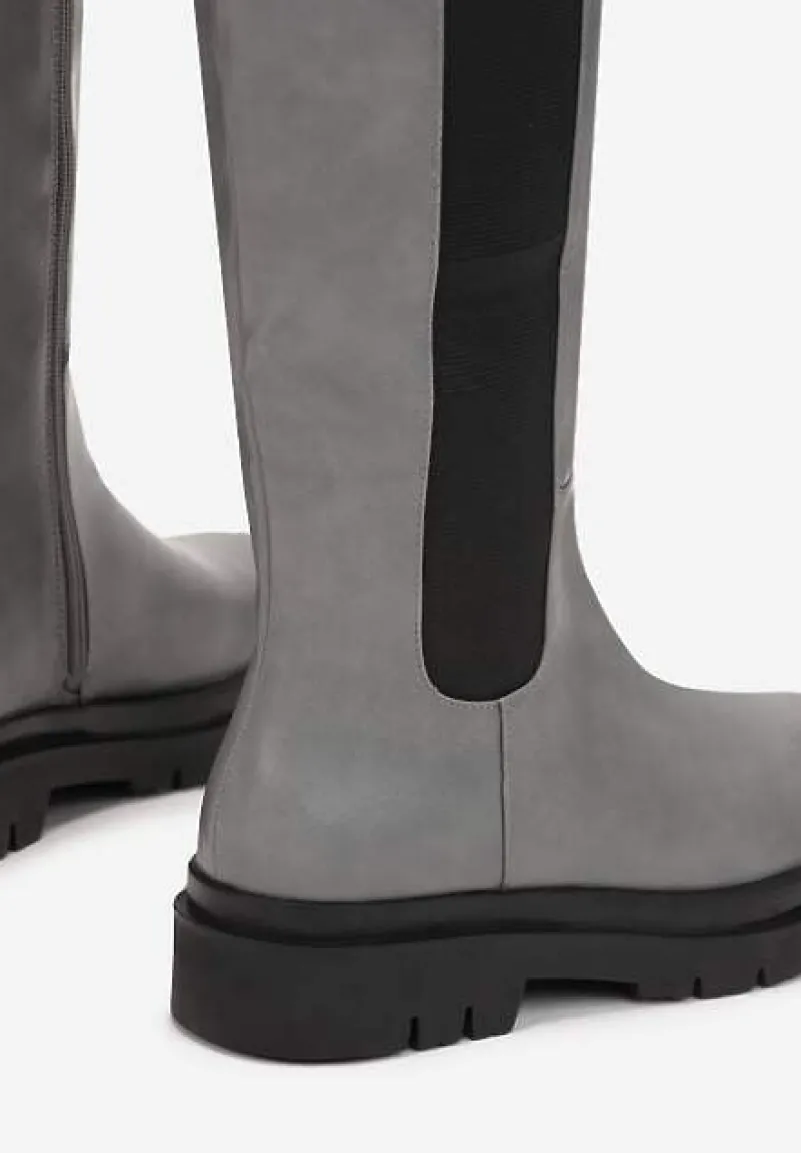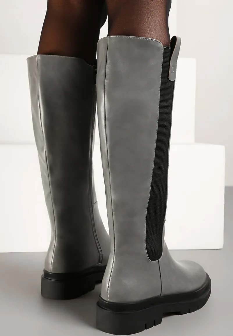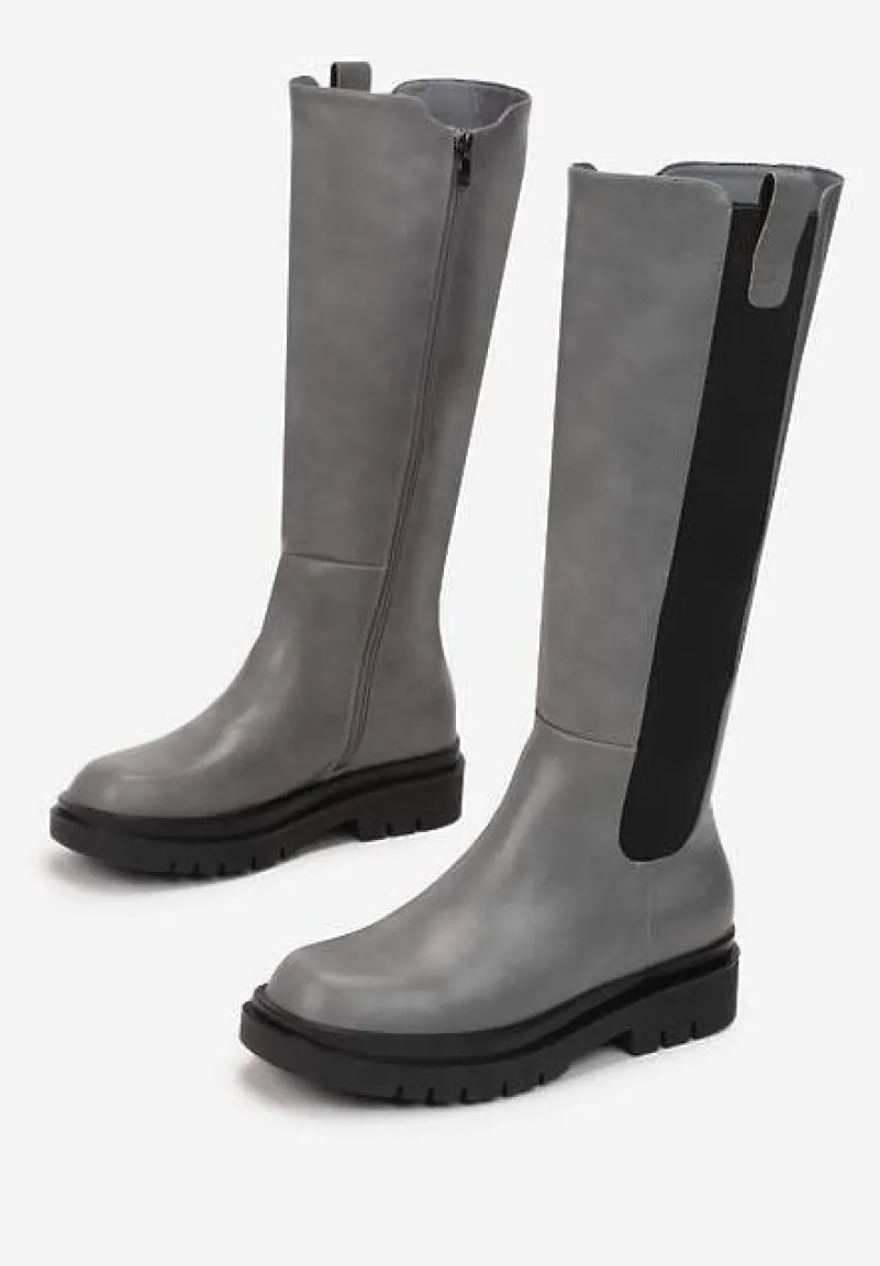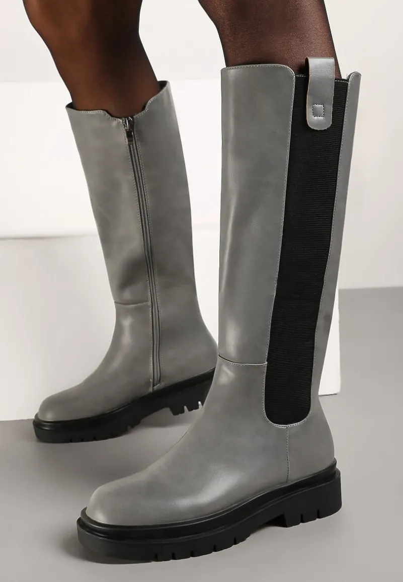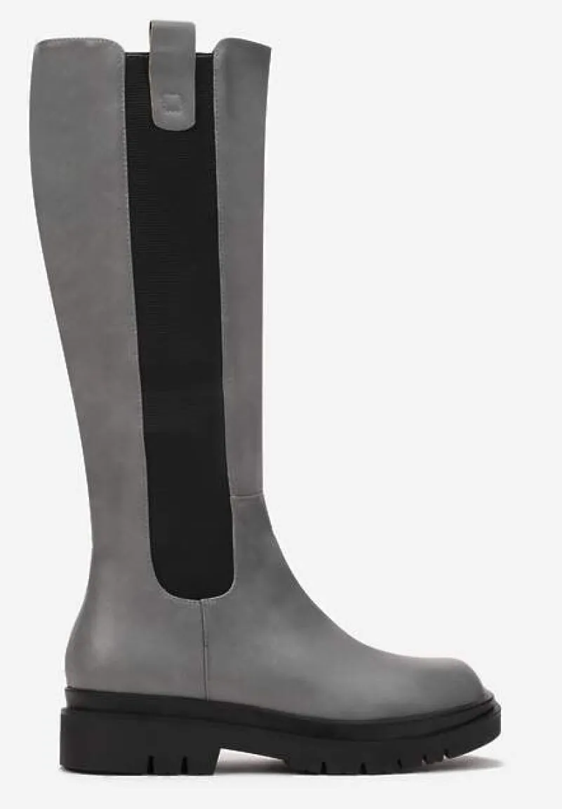 Kozaki Soloene z wygodnym zapięciem na zamek błyskawiczny po wewnętrznej stronie cholewki. Po drugiej stronie wstawka z elastycznego materiału. Osadzone na płaskim obcasie i podeszwie z bieżnikiem. Ze smukłym, zaokrąglonym noskiem. Wykonane z ekoskóry, lekko ocieplane kocem obuwniczym. Rewelacyjnie uzupełnią i subtelnie ozdobią codzienne stylizacje!