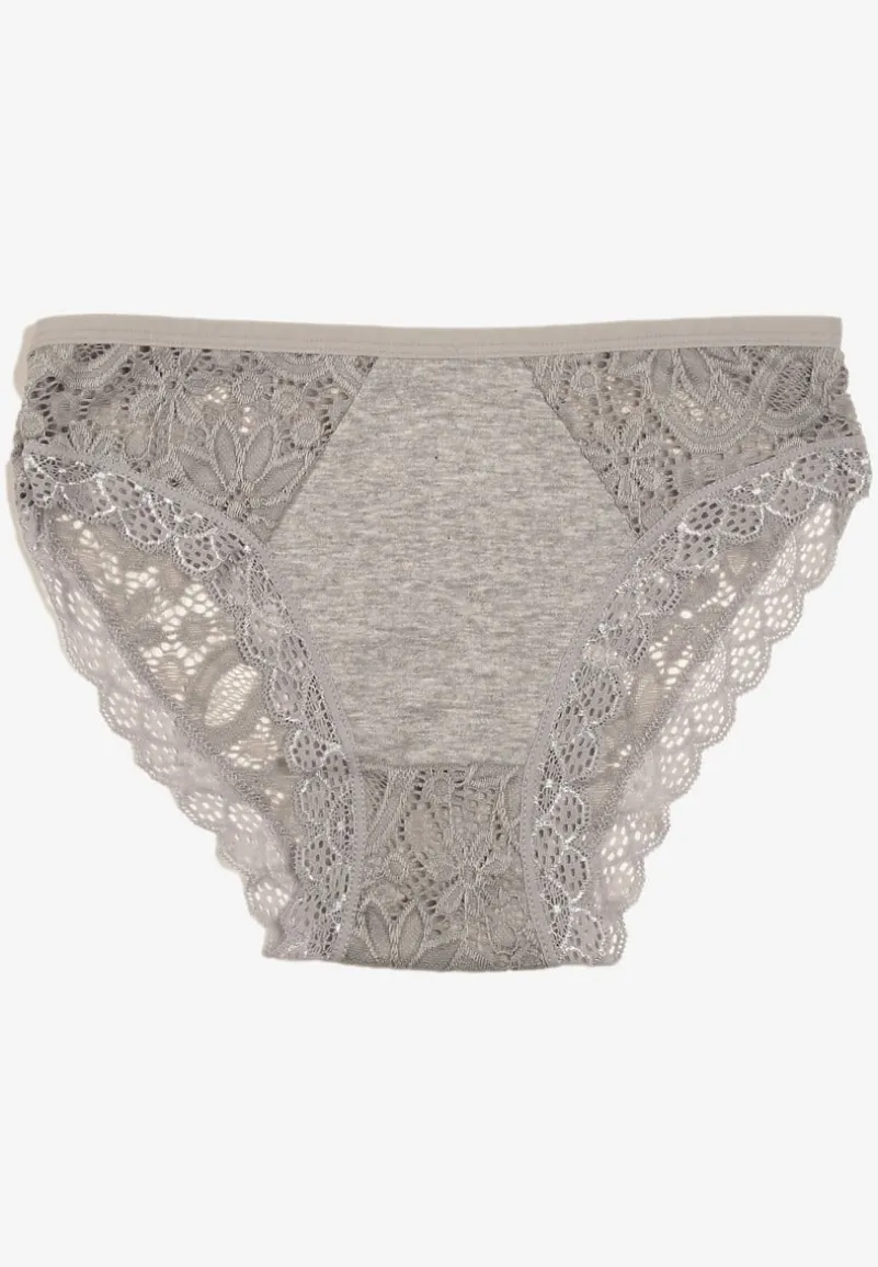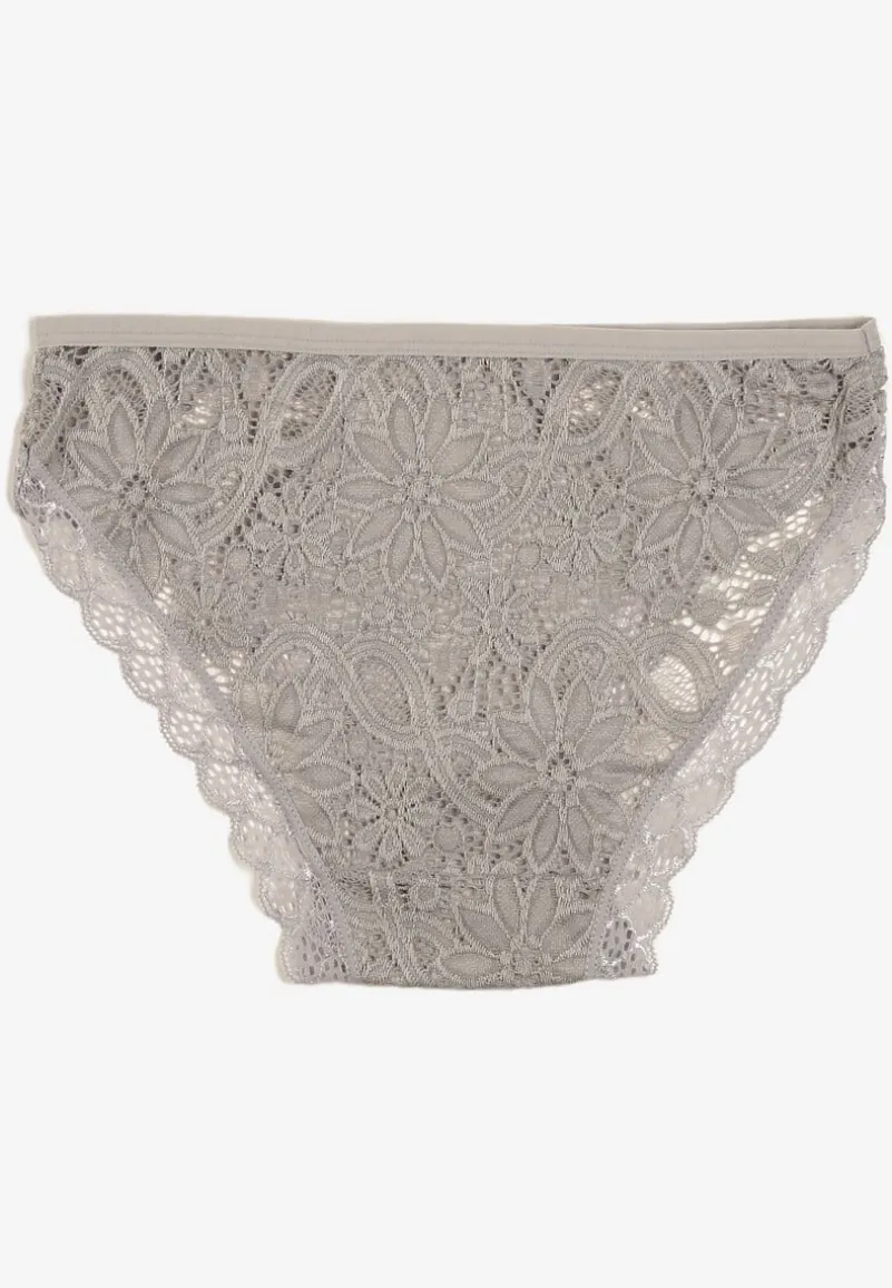 Majtki Belenia o fasonie klasycznych fig. Zostały ozdobione subtelną koronką w kwiatowy wzór.