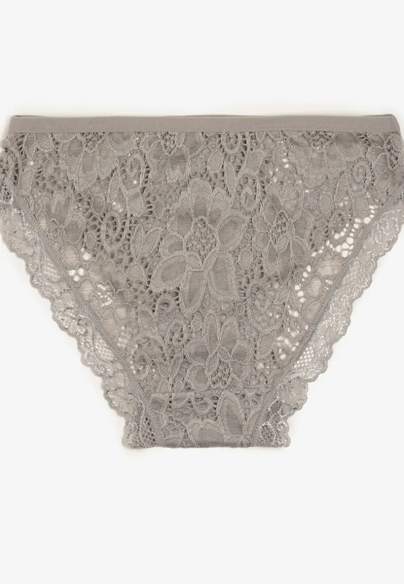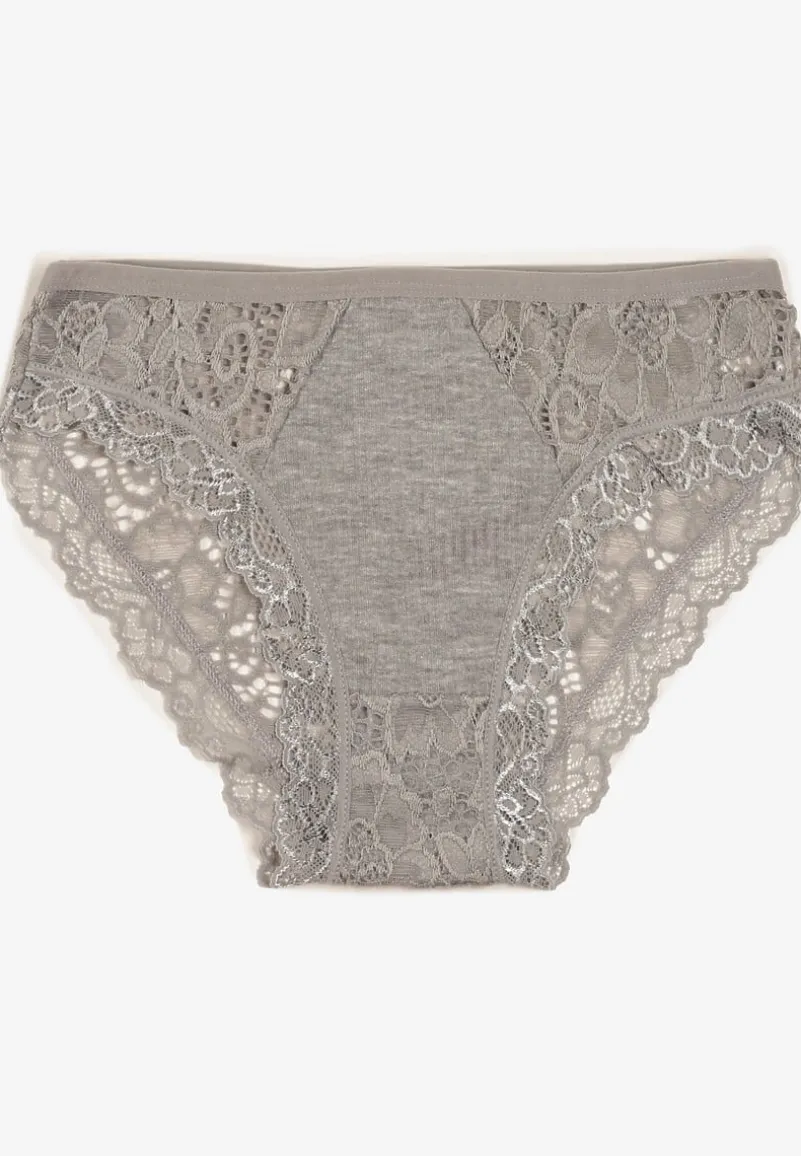 Majtki figi Okarde z ozdobną koronką i wstawką z prążkowanego materiału. Wykonane z elastycznej bawełny, która zapewni komfort przez cały dzień.