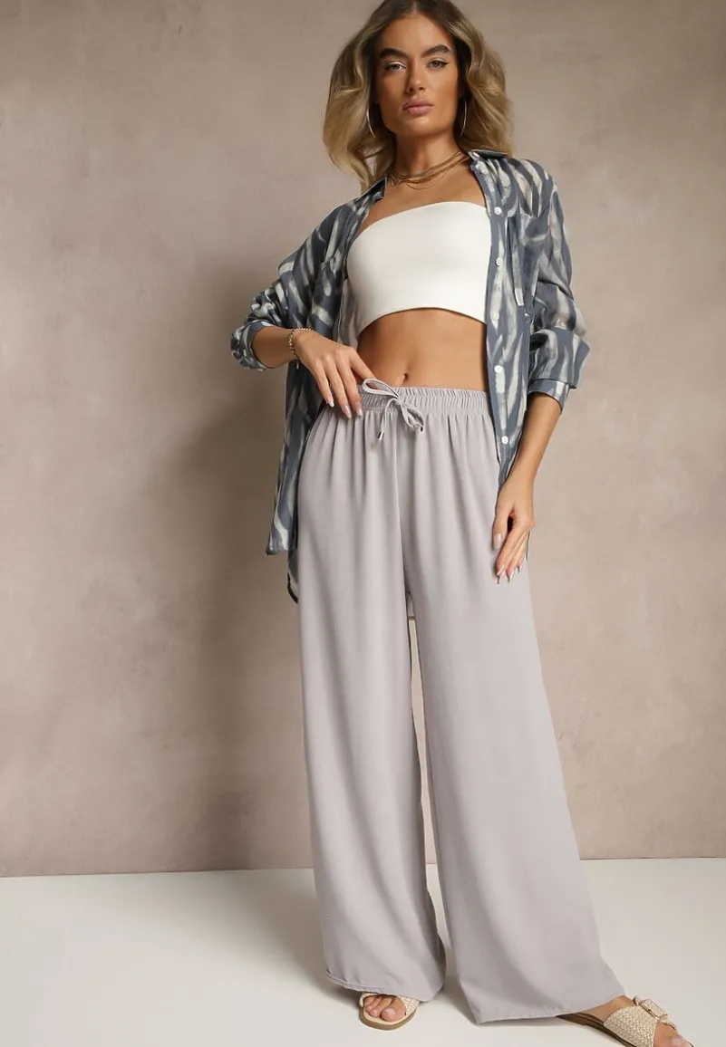 Spodnie z Bawełną o Szerokim Kroju z Wiązaniem Rosanelisa to must-have w szafie modnej kobiety! Ich luźny fason z wysokim stanem z elastyczną gumką w pasie i szerokimi nogawkami zapewnia elegancję. Idealnie sprawdzą się na co dzień, wystylizowane z oversize’owym t-shirtem i sneakersami.