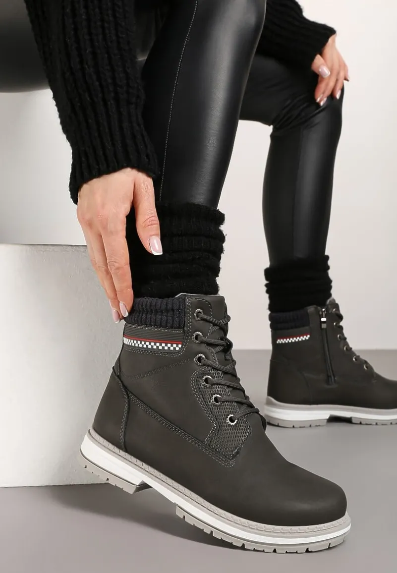 Sznurowane trapery Brenneth to kwintesencja miejskiego stylu w połączeniu z wyraźnym chrakaterem. Ozdobione subtelnym tłoczeniem, wyposażone w płaską podeszwę, świetnie sprawdzą się w chłodniejsze dni. Zgrabny, zaokrąglony nosek oraz praktyczne zapięcie na sznurówki i suwak gwarantują dopasowanie. Te trapery to doskonała baza zarówno do codziennych, miejskich zestawów z jeansami i luźnym swetrem, jak i odważniejszych, rockowych looków z skórzaną kurtką. Włóż je, aby dodać pewności siebie swoim miejskim przygodom!