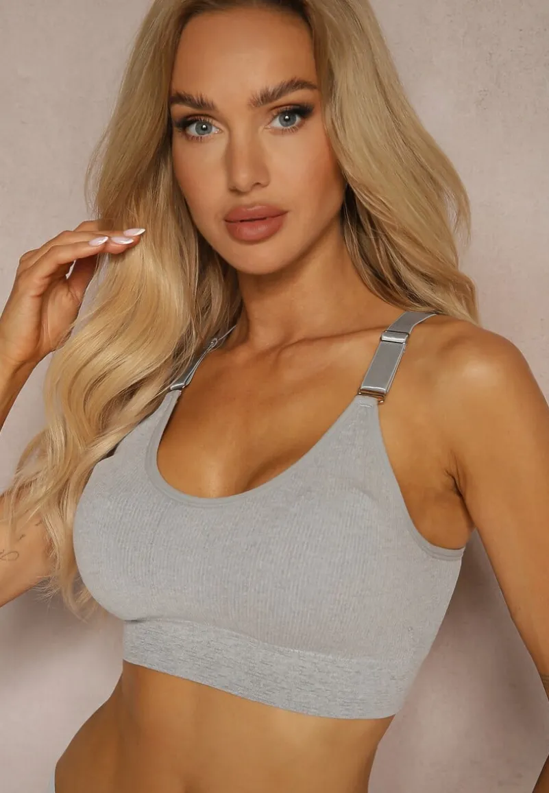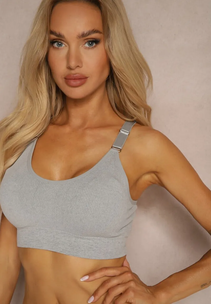 Szary Biustonosz w Typie Sportowego Topu z Koronką Nevenelle