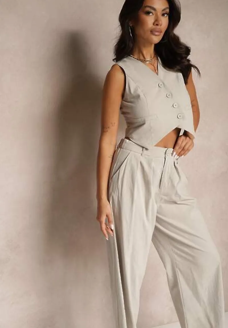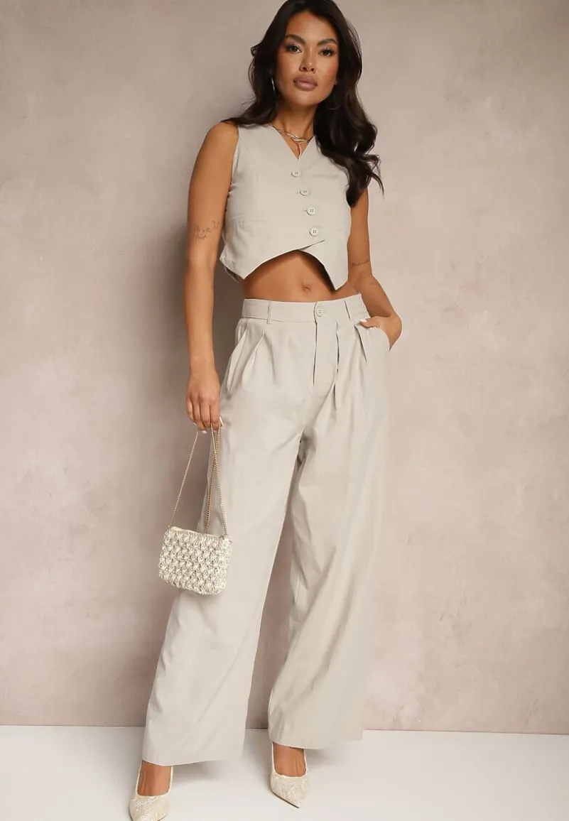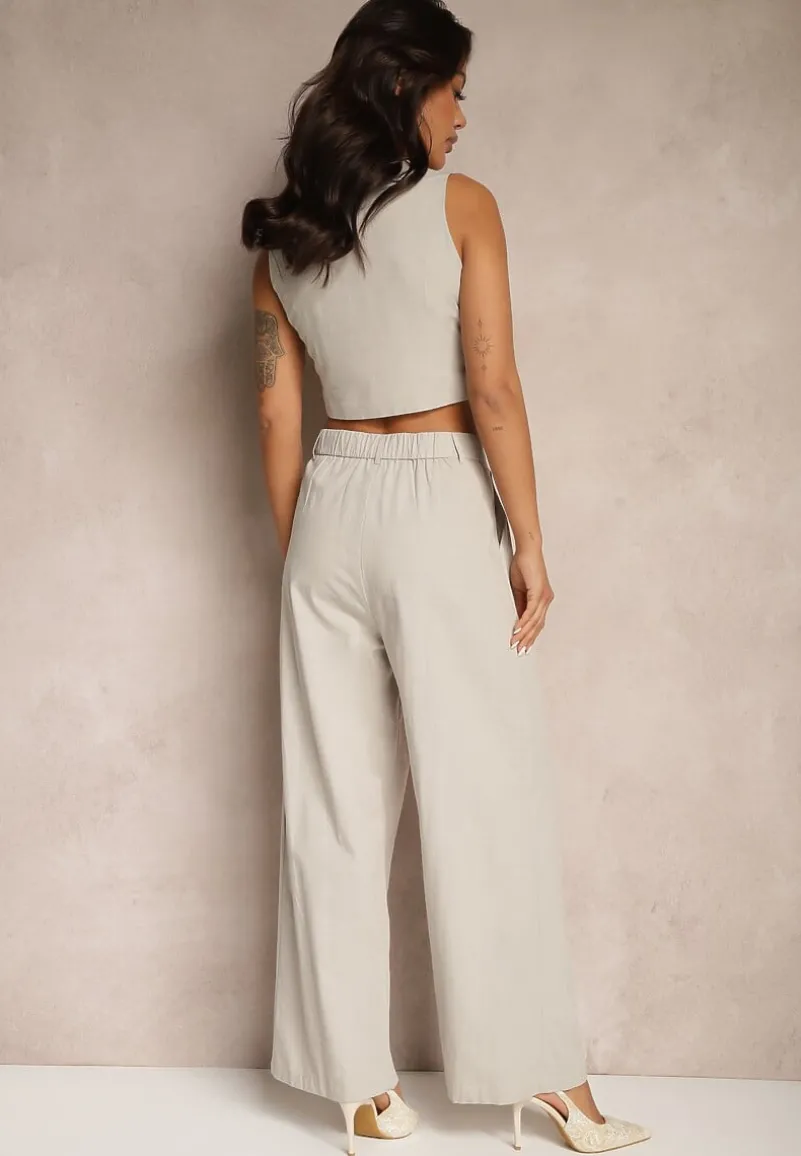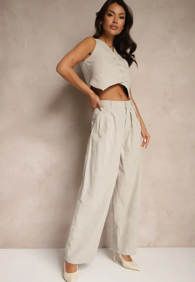 Garniturowy Komplet z Wiskozą i Bawełną Milvivis to idealny wybór dla kobiet, które cenią swobodę ruchu i elegancki wygląd. Krój kamizelki na guziki podkreśla linię talii, a szerokie nogawki spodni na guzik i suwak, ze wsuwanymi kieszeniami dodają stylizacji lekkości. Dzięki naturalnym materiałom zestaw sprawdzi się wiosną i latem, idealnie wpisując się w klimat biurowych spotkań oraz codziennych stylizacji. Na co dzień połącz go z prostym t-shirtem i sneakersami, a na bardziej formalne okazje z elegancką bluzką i szpilkami.