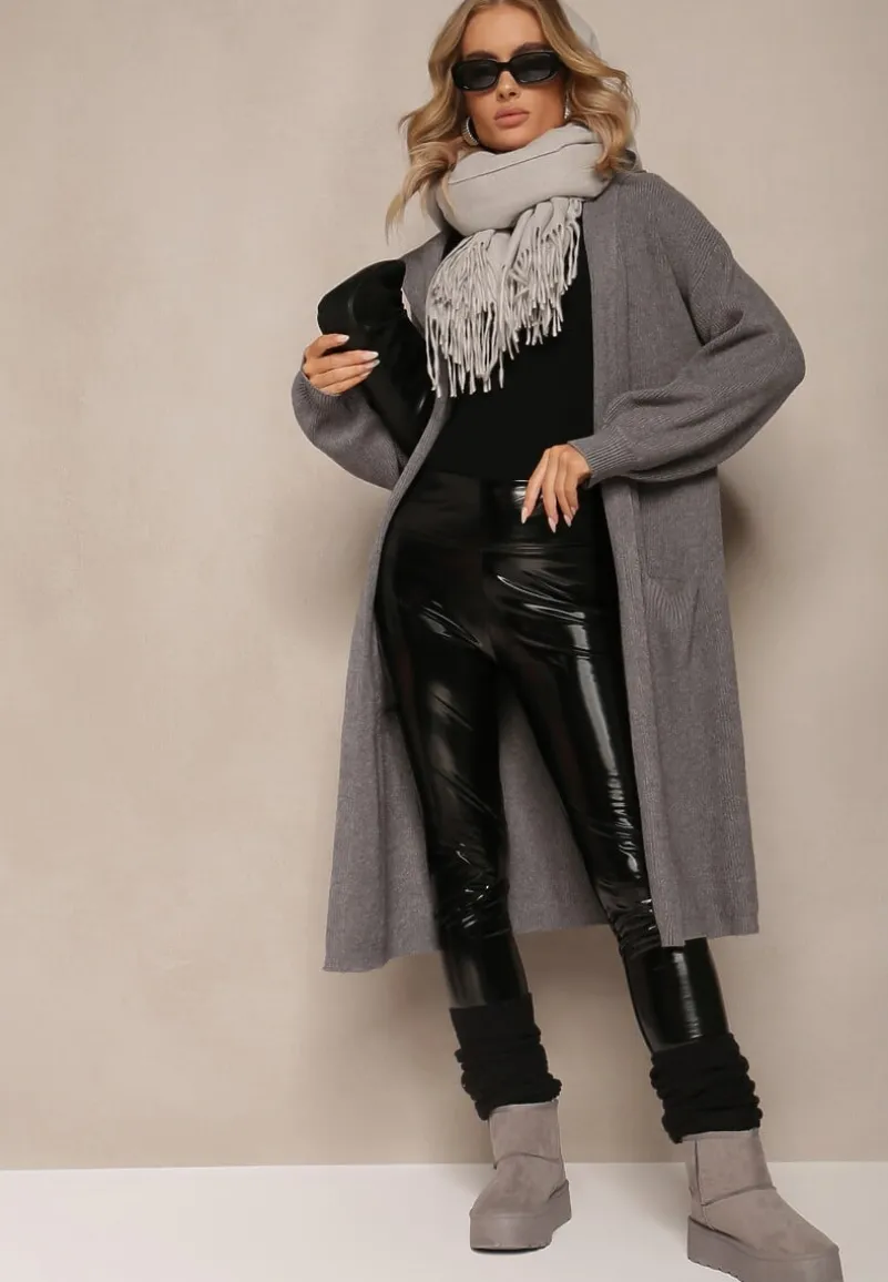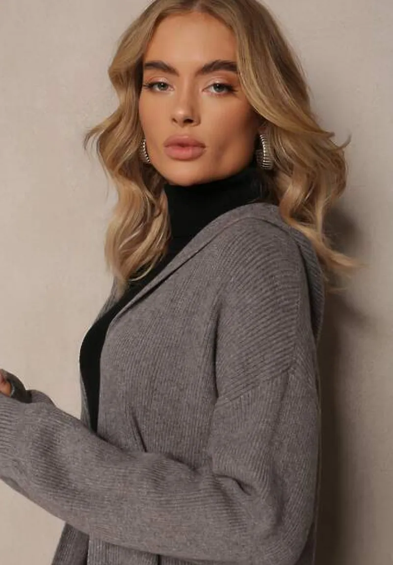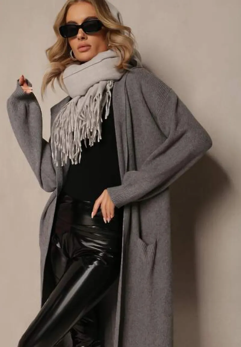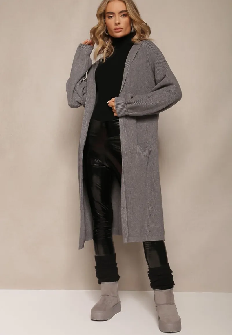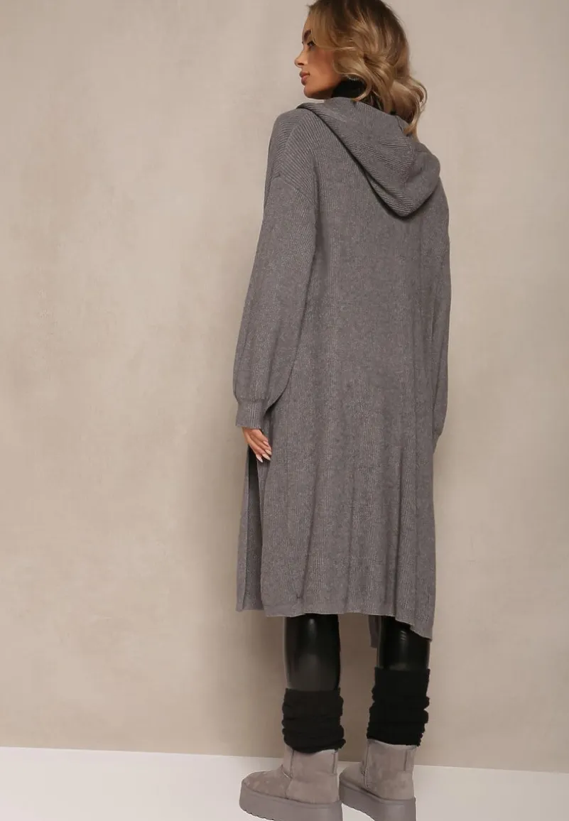 Kardigan Colise o niezapinanym, długim fasonie. Posiada kaptur oraz kieszenie.