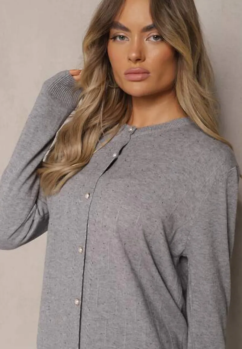 Kardigan Mevanine z dodatkiem bawełny to propozycja dla kobiet ceniących elegancję. Rękawy o standardowej długości gwarantują swobodę ruchów. Ozdobne cyrkonie nadają blasku i są świetnym uzupełnieniem zarówno codziennego, jak i wieczorowego looku. Idealny na chłodniejsze dni w sezonie wiosennym lub jesienią, świetnie sprawdzi się wparciu z prostymi topami i skinny jeansami dla casualowego looku, albo z elegancką sukienką i botkami dla bardziej formalnych okoliczności.