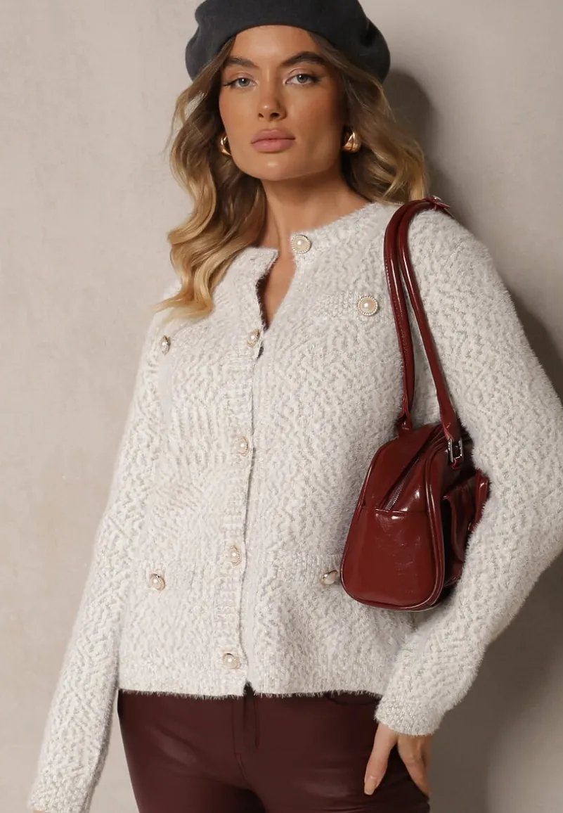 Kardigan Nomilira z wiskozą to idealny wybór dla kobiet, które cenią sobie elegancję i najnowsze trendy w modzie. Prosty fason i półokrągły dekolt dyskretnie podkreślają sylwetkę, a długie rękawy dodają subtelnej klasyki. Ozdobiony imitacją kieszeni i stylowymi guzikami, doskonale sprawdzi się na co dzień oraz na wyjątkowe okazje. Połącz go z casualowymi jeansami i botkami na co dzień, a na wieczorne wyjście postaw na ołówkową spódnicę i kolczyki w stylu glamour.